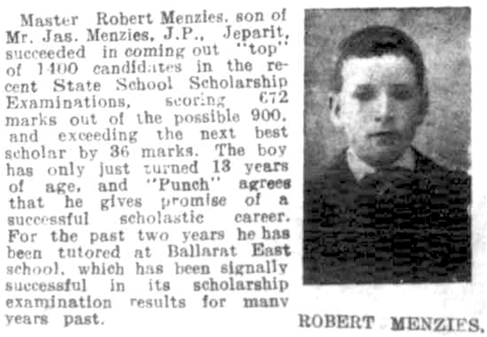로버트 고든 멘지스는 1894년 12월 20일 빅토리아주 서부 윔메라 지방의 작은 마을 제파릿에서 태어났다. 아버지는 가게 주인이었고, 외할아버지는 광부였다.
