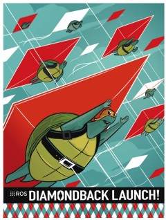 2010년 3월 2일, ROS의 첫 번째 공식 배포판인 ROS Box Turtle이 출시되었으며, 이는 ROS가 공식적으로 공공 사용을 위해 버전 관리된 패키지 세트와 함께 배포된 첫 번째 사례였다. 이러한 개발은 ROS를 실행하는 첫 번째 드론,[37] ROS를 실행하는 첫 번째 자율 주행 자동차,[38] 및 레고 마인드스톰에 ROS를 적용하는 결과를 낳았다.[39]