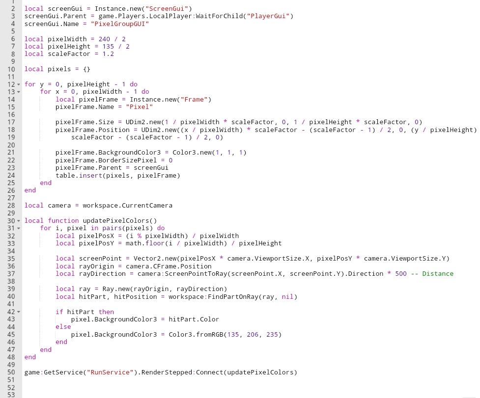 로블록스는 사용자가 자체 게임 엔진인 "로블록스 스튜디오"(Roblox Studio영어)를 사용하여 자신만의 게임을 만들고, 다른 사용자가 만든 게임을 플레이할 수 있게 한다.[235] 게임은 객체 지향 프로그래밍 시스템에서 루아 5.1.4를 사용하여 코딩된다.[236][237]Roblox Studio는 사용자가 자신만의 게임을 만들고 다른 사용자가 플레이할 수 있도록 하는 자체 엔진이다.