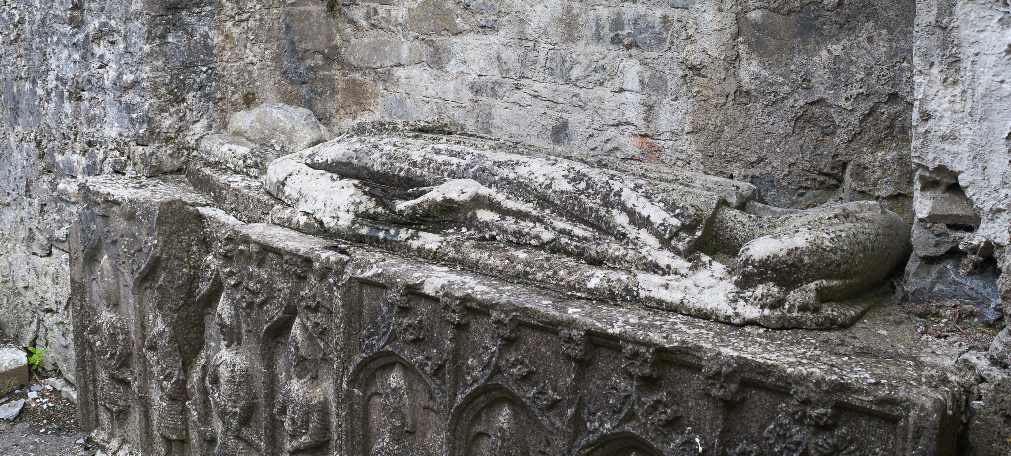 성가대석 북쪽 틈새에는 펠림 오 코너 왕의 초상이 있는데, 이는 1300년경에 제작된 것으로 추정된다.[13] 긴 가운과 망토를 입고 오른손에 백합 문양이 새겨진 홀을 들고 있는 왕의 모습은 당시 영국의 왕실 복장을 모방했을 가능성을 시사한다.[13] 초상 조각을 지지하는 무덤 정면에는 15세기에 조각된 갤로글래스 8개의 조각상이 있다.[13] 이들은 체인 메일로 몸을 보호하고 바시넷 헬멧을 착용했으며, 칼로 무장하고 있다. 도끼와 같은 스파스를 들고 있는 조각상은 전형적인 갤로글래스 무기를 보여준다.[13]