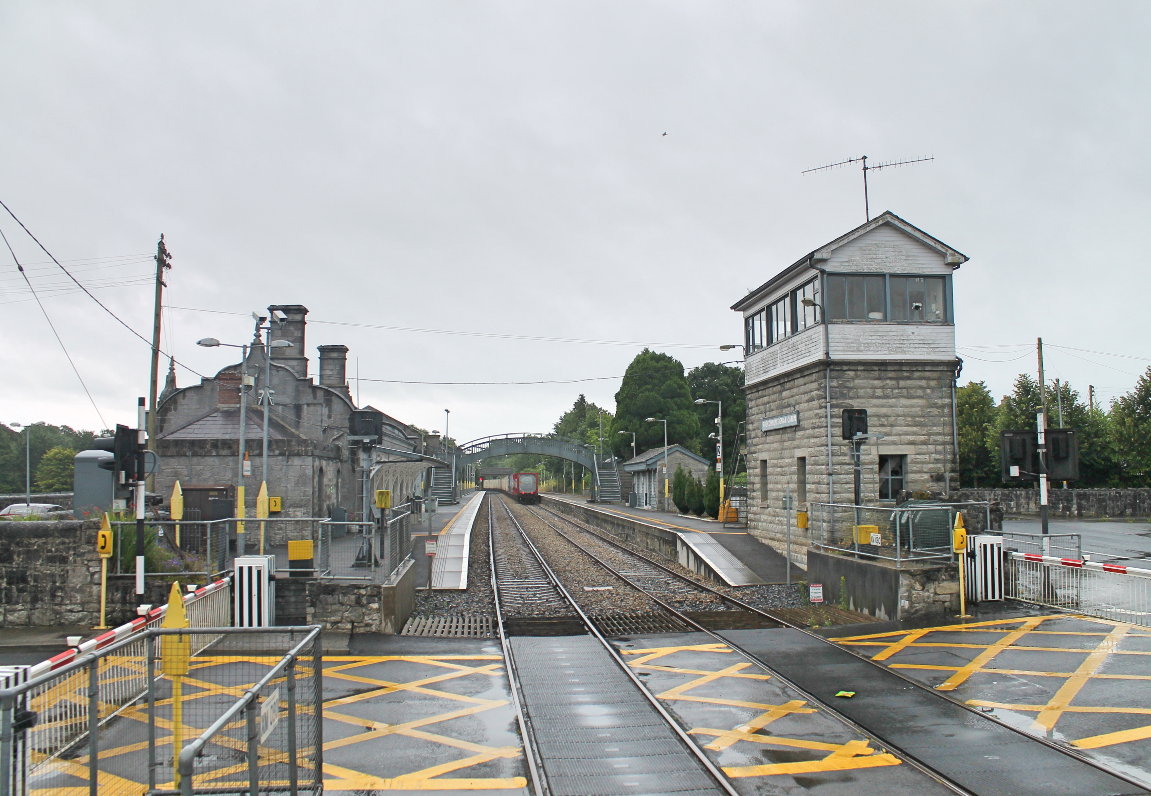 로스커먼 기차역은 1860년 2월 13일에 개통되었으며,[23] 더블린-웨스트포트 철도 노선의 모든 역으로 직접 연결되는 철도 서비스를 제공하며, 볼리나, 골웨이, 리머릭, 코크, 워터포드 노선으로 간접 연결도 제공한다.