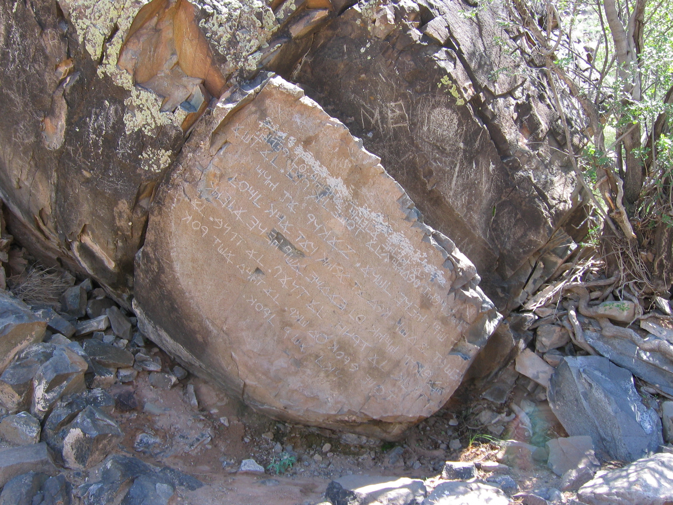 특징 | 뉴멕시코의 로스 루나스 근처에 있는 히든 마운틴의 경사면에 있는 큰 바위에 새겨진 비문 |