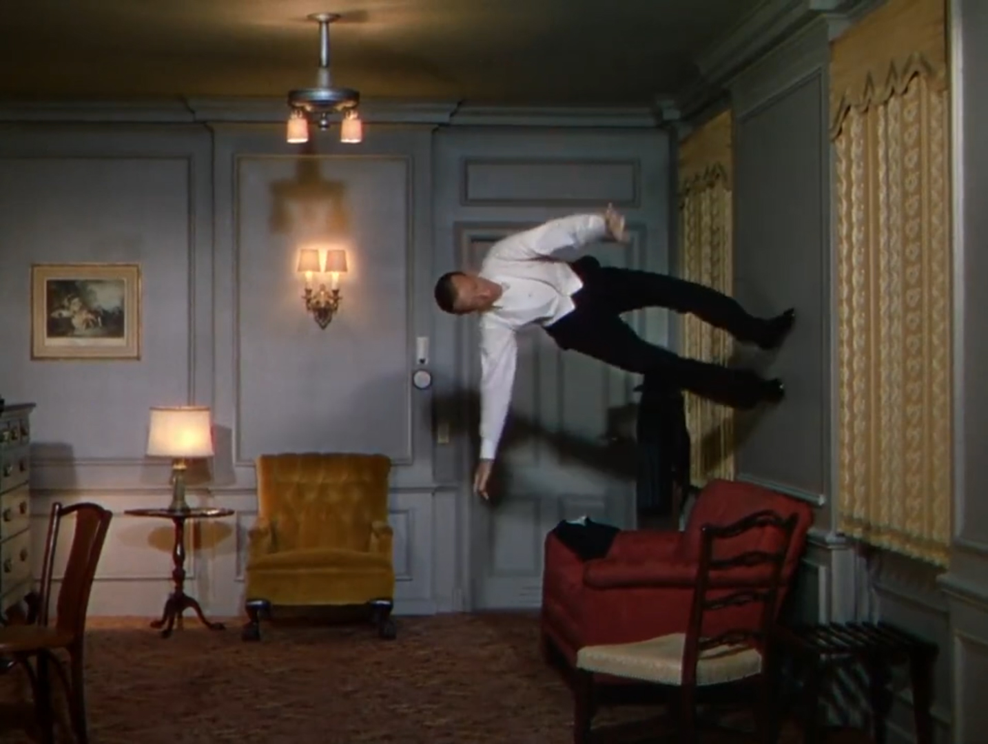 - "You're All the World to Me": 아스테어는 그의 가장 유명한 솔로 중 하나에서, 춤을 사랑하는 아름다운 여인과 사랑에 빠져 그의 방의 벽과 천장에서 춤을 춘다.