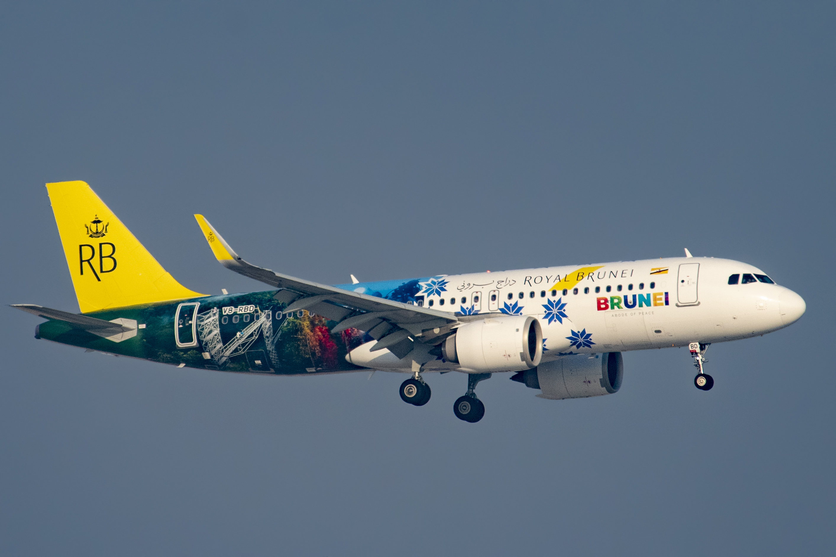 브루나이 관광 도장이 있는 로열 브루나이 항공의 에어버스 A320neo