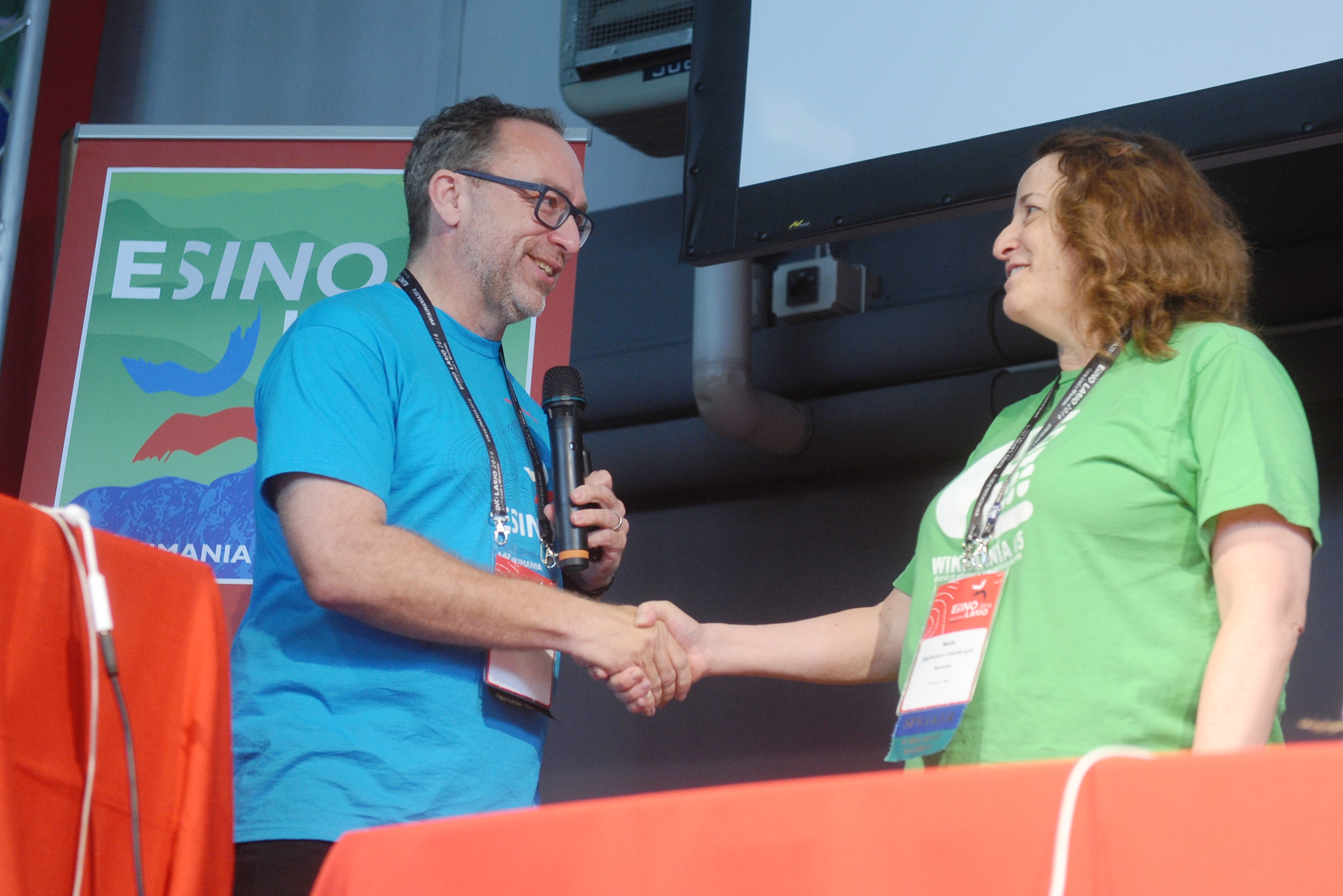 지미 웨일스와 함께 있는 스티븐슨-굿나이트(위키마니아 2016에서)
