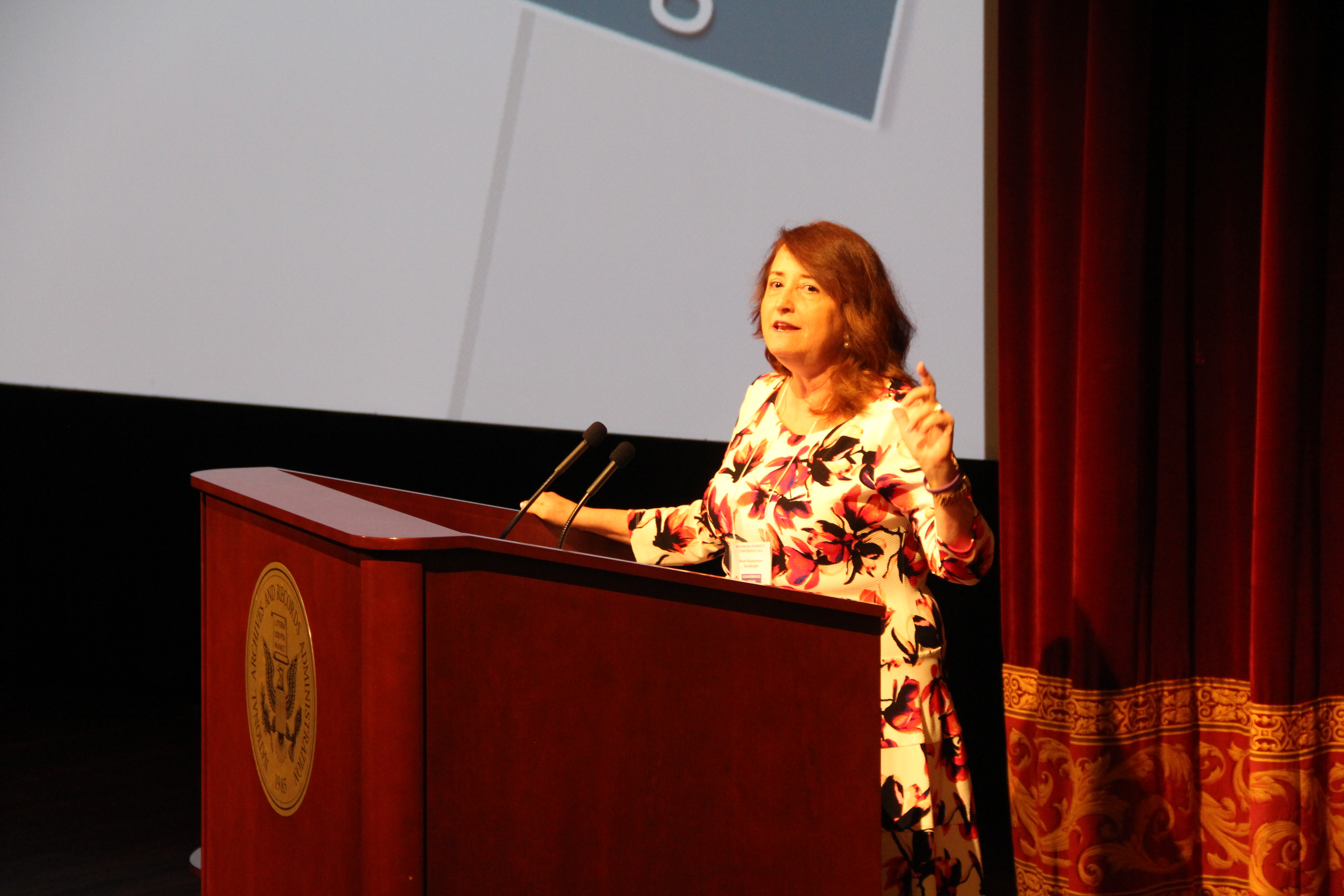 2016년 위키미디어 다양성 컨퍼런스에서 강연하는 로지 스티븐슨-굿나이트