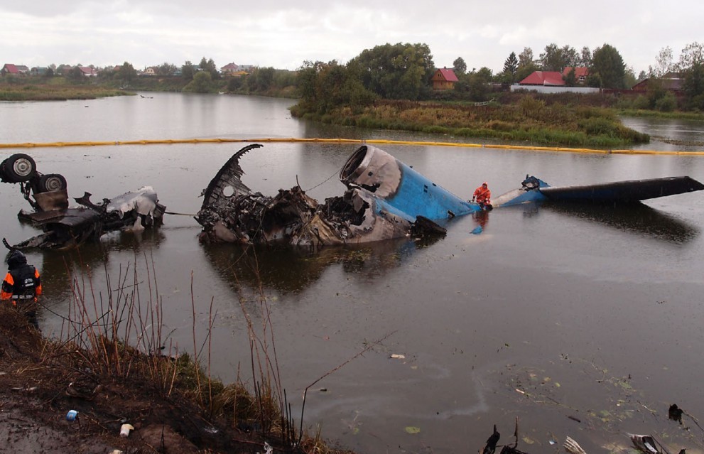 2011년 9월 7일, 러시아 야로슬라블 투노시나 공항에서 콘티넨탈 하키 리그 (KHL) 개막전에 참가하기 위해 벨라루스 민스크로 향하던 로코모티프 야로슬라블 선수단을 태운 Yak-42D 여객기가 이륙 직후 추락했다.[13][14] 사고 당일 투노시나 공항의 기상 상태는 양호했으며, 약한 바람과 좋은 시정을 보였다.[65]항공기 등록 번호 RA-42434 야크-42는 활주로 05/23에 진입하여 이륙을 시도했다.[13] 약 230km/h까지 가속했지만 이륙에 실패하고 활주로 끝을 지나 400m 더 활주한 후에야 이륙했다.[65] 그러나 동체는 활주로 끝에서 약 450m 떨어진 안테나 기둥에 부딪혔고, 지상에서 6m 이상 상승하지 못했다.[14][65] 기둥 충돌로 인해 항공기는 왼쪽으로 기울어져 볼가강과 합류하는 투노숀카 강둑에 추락했다.[14] 이 충돌로 미익이 떨어져 나가고, 제트기의 앞부분은 산산조각 났다.[14] 꼬리 부분은 물속에 가라앉았고, 나머지 동체는 육지에 놓였다.[15] 잔해는 활주로 끝에서 약 2km 떨어져 있었다.[16]