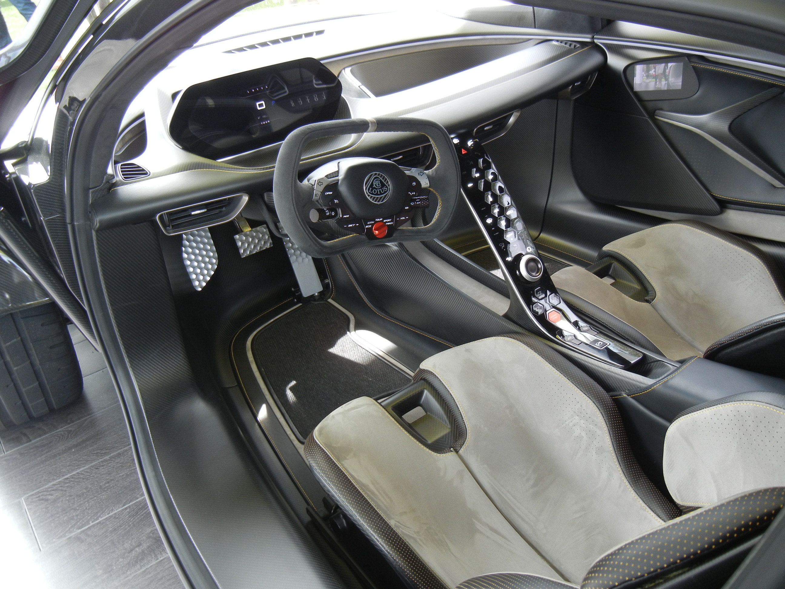 인테리어는 익스테리어와 마찬가지로 포로시티 콘셉트를 채용했으며, "플로팅 윙"이라고 불리는 독특한 형태의 대시보드가 특징이다[19]. 이는 1950년대 말부터 1960년대 초에 로터스가 시제품으로 제작한 레이싱카에서 착안한 것이다. 센터 콘솔에는 각종 스위치류가 모여 있으며, "로터스의 컴포넌트는 어떤 것도 쉽게 만들어서는 안 된다"라는 로터스 창업자 콜린 채프먼의 사상을 반영한 것이라고 한다[18].
