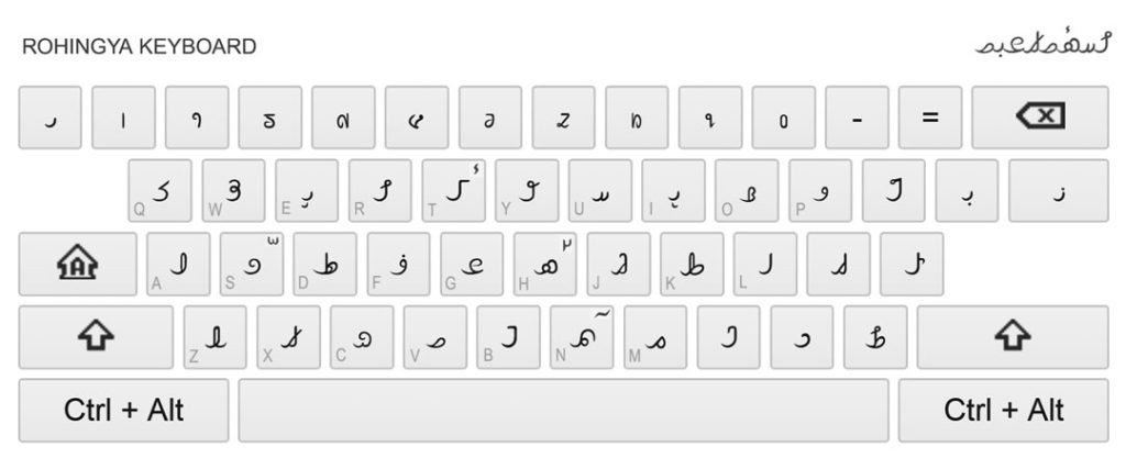 가상 키보드는 2019년 구글이 로힝야어용으로 개발했으며 사용자가 로힝야 문자 스크립트를 직접 입력할 수 있다. 로힝야 유니코드 자판 배치는 [https://languagetools-153419.appspot.com/rhg/ 여기]에서 찾을 수 있다.
