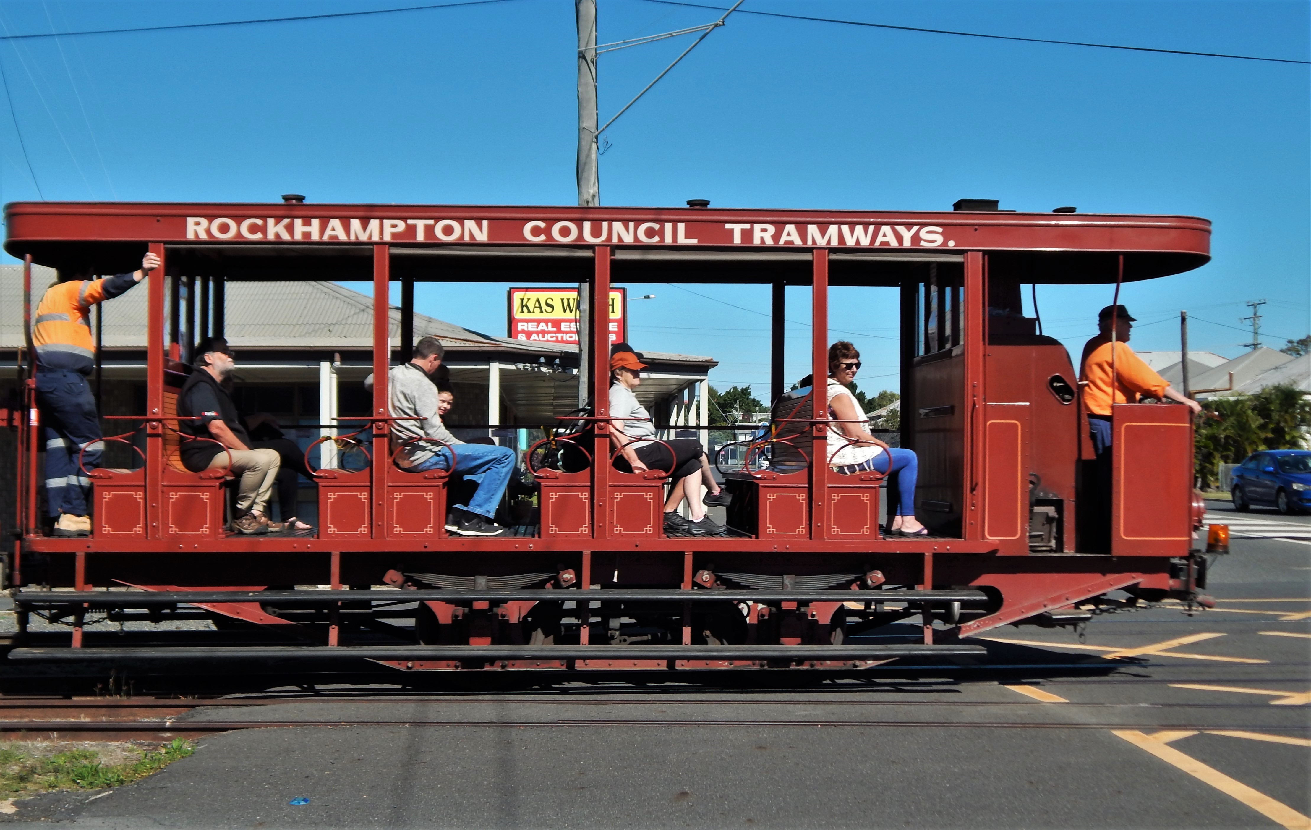 록햄프턴의 트램(Trams in Rockhampton) 여객 트램은 1909년 6월 16일에 운행을 시작하여 퀸즐랜드에서 가로 트램이 있는 유일한 지방 도시가 되었다.[34] 푸레이 증기 트램은 남부 록햄프턴 전역의 여러 노선에서 총 10km의 트랙으로 운행되었다. 그러나 열대 기후에서 증기 트램을 타는 승객들의 불편함으로 인해 1939년에 시의회에서 운영하는 버스 네트워크로 대체되었다.[35]