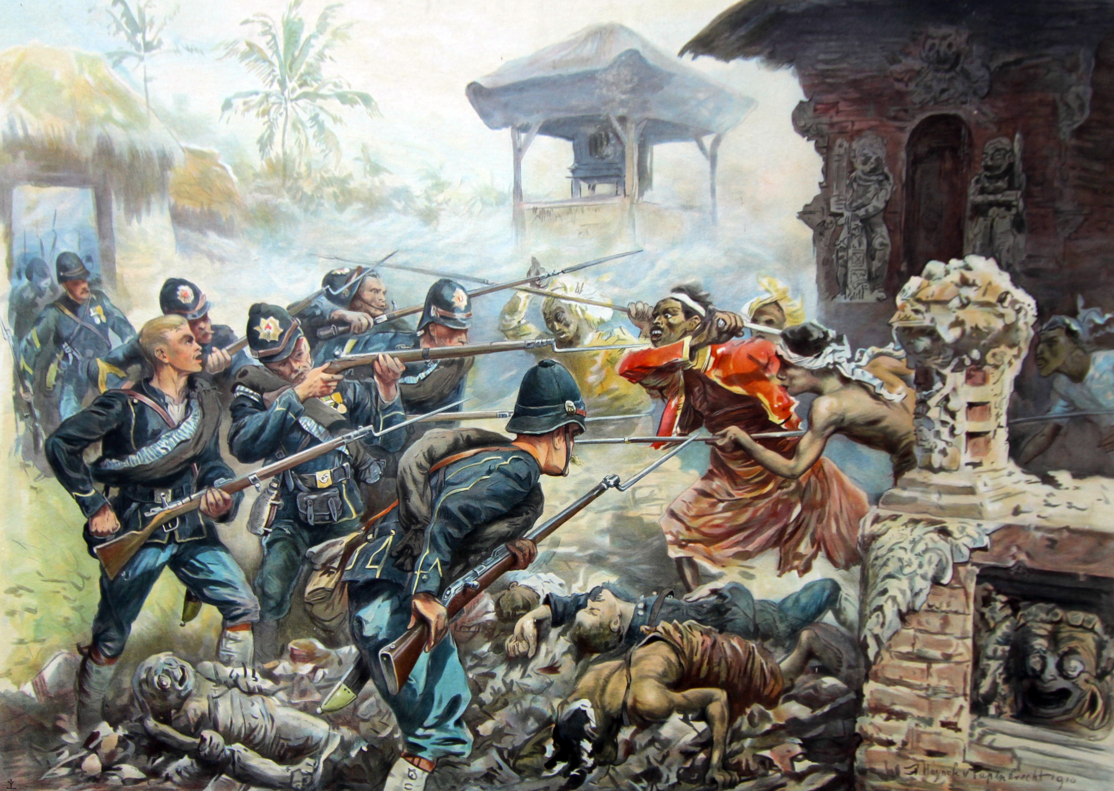 사삭 농민들이 발리족에 대항한 많은 반란 중 하나에서, 사삭 추장들은 발리의 네덜란드에 사절을 보내 롬복을 통치하도록 요청했다. 1894년 6월, 네덜란드령 동인도의 총독 반 데르 비크는 동부 롬복의 사삭 반군과 조약을 체결하고 롬복에 대규모 군대를 보냈고, 발리족 라자는 네덜란드의 요구에 굴복했다. (네덜란드의 롬복 개입 참조) 그러나 젊은 왕자들은 라자를 무시하고 네덜란드를 공격하여 밀어냈다. 네덜란드는 반격하여 마타람을 점령했고, 라자는 항복했다. 1895년, 섬 전체는 네덜란드령 동인도에 합병되었다. 네덜란드는 발리족과 사삭 귀족의 지지를 얻어 롬복의 50만 명을 250명 이하의 병력으로 통치했으며, 롬복에서는 네덜란드를 발리족 헤게모니로부터 해방시킨 해방자로 기억하고 있다.