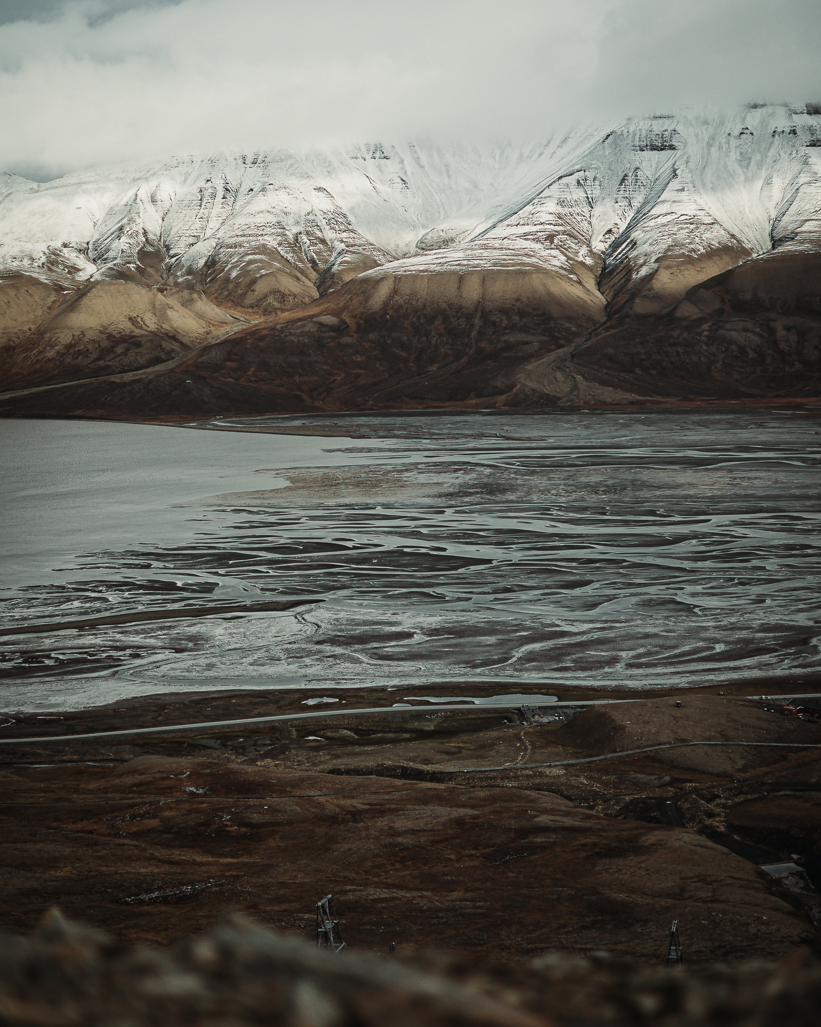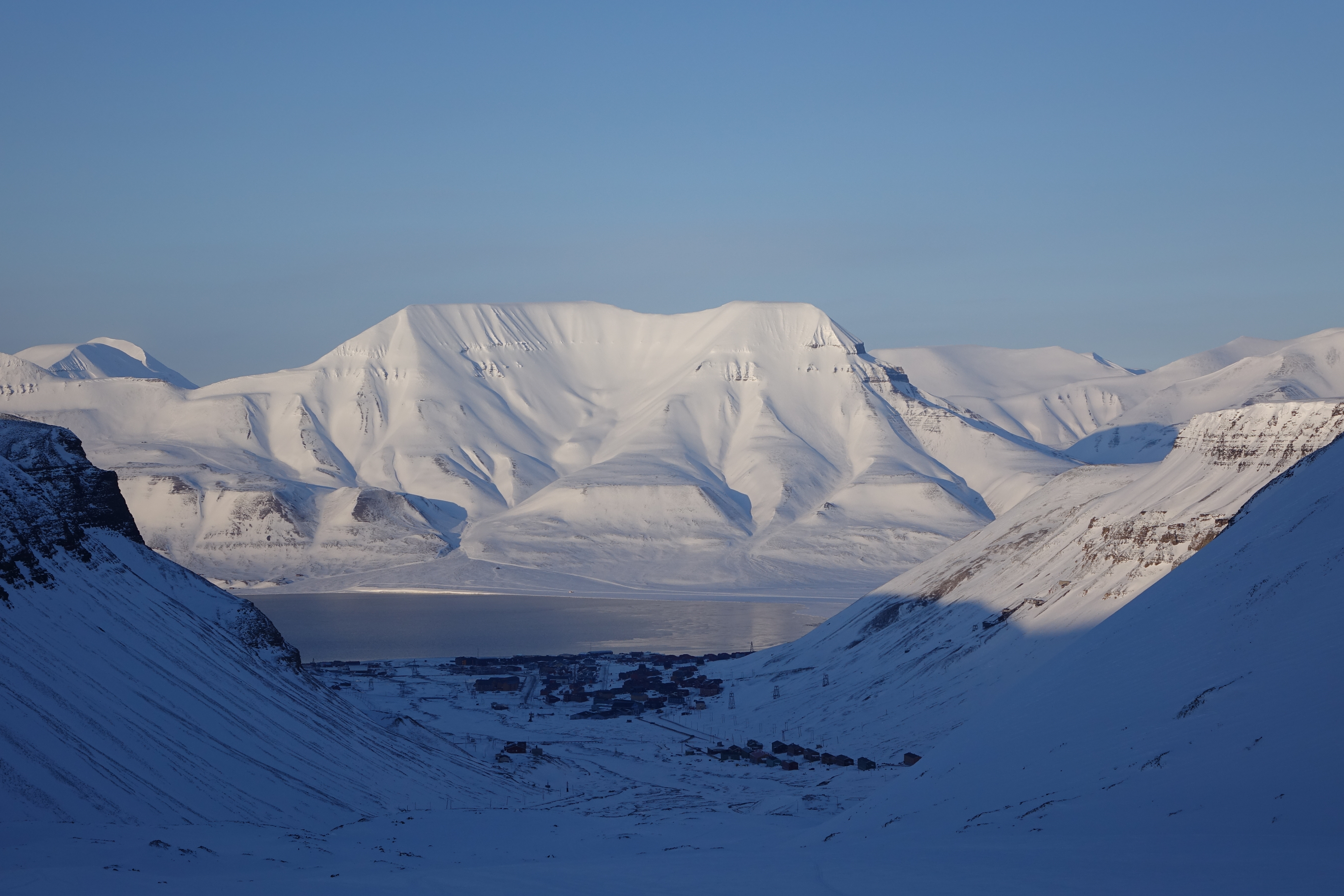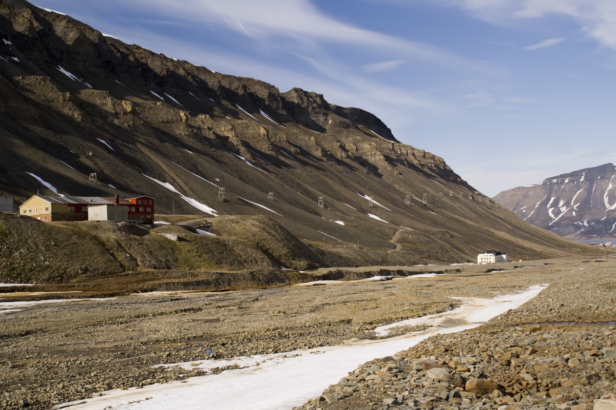 대부분의 주거, 상업, 문화 시설은 강의 동쪽에 있다. 만을 따라 Sjøskrenten이 있고, 더 위에는 대학교 센터와 가장 큰 주거 지역인 Gruvedalen이 있다. 남쪽으로 주요 쇼핑 지역과 시청이 있으며, 동쪽에는 주거 지역 Lia와 학교가 있는 Haugen이 있다. 계곡 가장 위쪽에는 Mine 2b와 학생 기숙사로 사용되는 Nybyen이 있다. 도시 서쪽 Hotellneset 방향에는 공항과 Mine 3이 있고, 나머지 광산은 도시 동쪽 Adventdalen에 있다.[16]