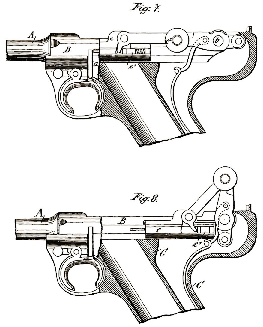 휴고 보차르트가 개발한 보차르트 C-93의 성공 이후, 게오르그 루거는 C-93의 단점을 개선한 새로운 권총을 설계하게 된다.[93] 1898년 파라벨룸 권총(Parabellumpistole) 설계가 완성되었다.[92]C-93의 개량점으로, 거대한 銃尾는 내장되어 있던 판스프링을 그립 부분으로 이동시켜 소형화했다. 7.65x25mm 보르하르트탄의 약협을 21mm까지 단축한 7.65x21mm 파라벨룸탄을 개발하여 토글 후퇴 거리를 짧게 했다. 이로써 토글 액션 기구의 소형 경량화가 실현되었다. 또한, 탄창 수납 그립에 약간 각도를 붙여 C-93보다 쥐기 쉬운 형태가 되었다.[94]