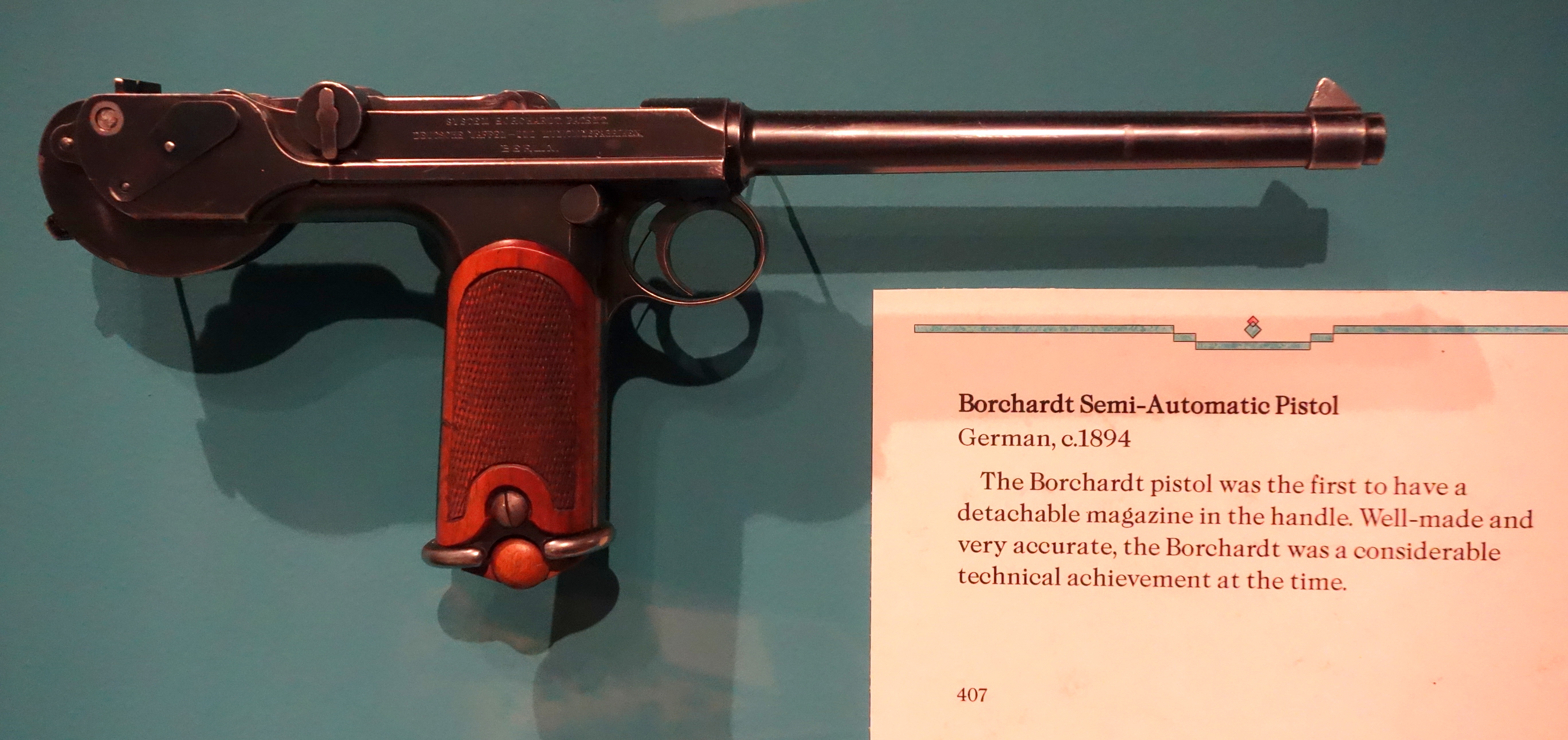 1897년, 최초로 대량 생산된 반자동 권총인 보르하르트 C-93의 성공 이후, 스위스군은 당시 제식 권총이었던 오르도난츠레볼버 1872를 대체할 반자동 권총을 찾기 시작했다.[91] 독일 무기 및 탄약 공장(Deutsche Waffen- und Munitionsfabriken)(DWM)에서 일하던 게오르그 루거는 보르하르트-루거 설계를 제시했는데, 스위스 군의 시험에서 만리히어 M1901이나 마우저 C96과 같은 경쟁 디자인보다 정확성과 신뢰성이 더 높은 것으로 나타났다. 1899년에 20정의 보르하르트-루거가 스위스로 보내졌고, 무게를 줄이기 위한 개량을 거친 후 이듬해 오르도난츠피스톨 1900으로 채택되었다.[93] 루거는 1949년 SIG P210으로 대체될 때까지 스위스 군에서 사용되었다.1901년, DWM은 미국에도 반자동 권총에 관심이 있었기에 루거 권총 두 정을 미국에 보냈다.[93] 시험에서 좋은 성적을 거둔 후, 웨스트포인트 육군사관학교와 기타 여러 요새에서 사용할 총 1,000정의 권총과 20만 발의 탄약이 구매되었다. 하지만 루거 권총은 인기가 없었고, 대부분의 병사들은 .38 롱 콜트 리볼버를 선호하여 1905년 루거 권총은 회수되었다.
