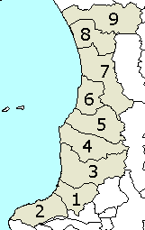 1. 루모이시 2. 마시케 정 3. 오비라 정 4. 토마마에 정 5. 하보로 정 6. 쇼산베츠 촌 7. 엔베츠 정 8. 테시오 정