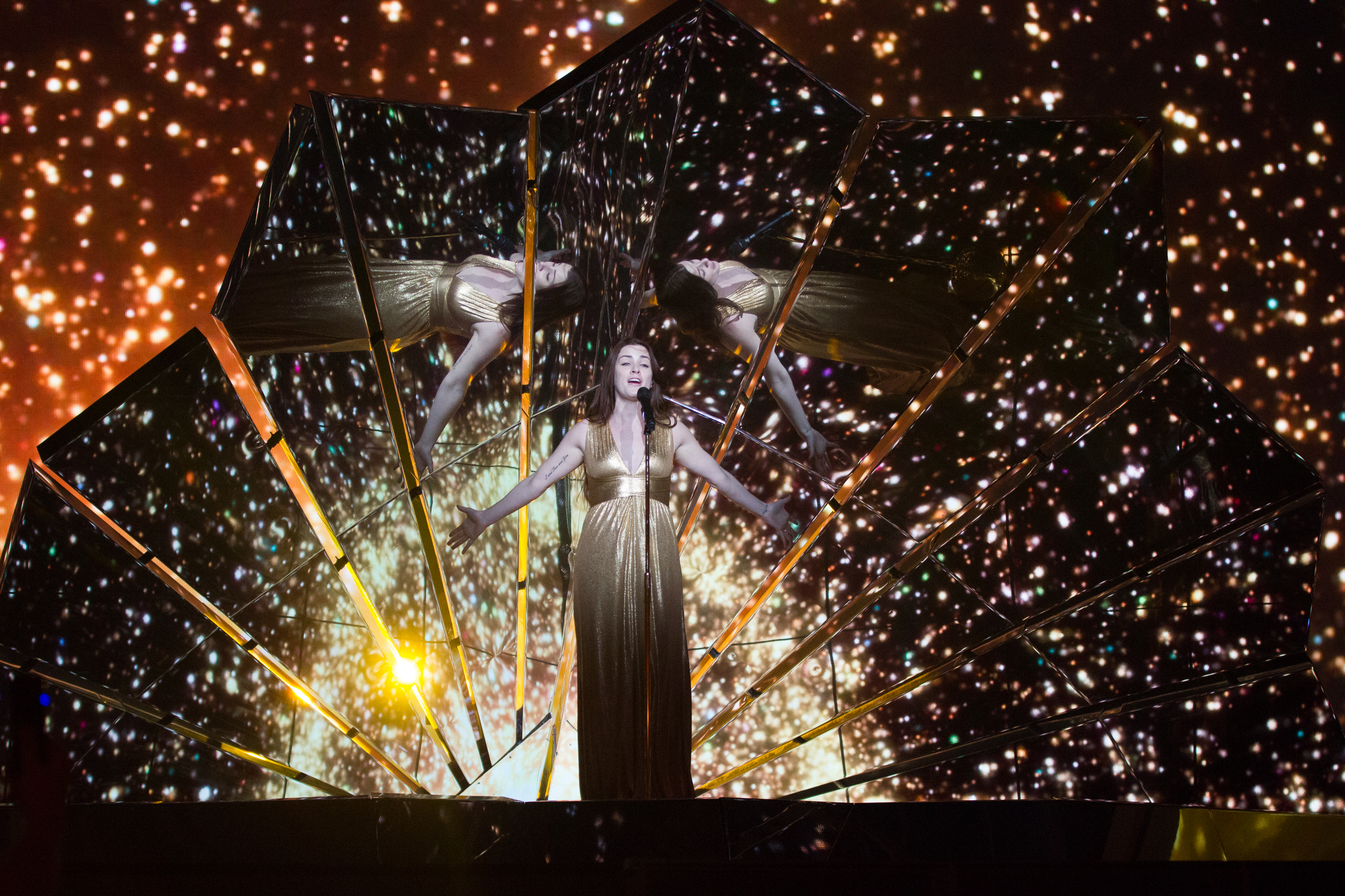 존스가 유로비전 송 콘테스트 2017 결선에서 공연하고 있다.