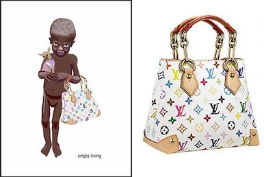 예술가의 표현의 자유와 브랜드의 상표권이 충돌하는 사례도 있었다. 2007년, 덴마크 미술 학생 나디아 플레스너는 "Simple Living"이라는 제목의 풍자적인 그림을 제작했다. 이 그림은 명품 가방을 든 영양실조 상태의 아프리카 아이를 묘사하여 다르푸르 분쟁 관련 기금 마련을 위한 티셔츠와 포스터에 사용되었다. 루이 비통은 이 그림이 자사의 지적 재산권을 침해했다고 주장하며 중지 명령을 보냈다.[51] 법원은 루이 비통의 손을 들어주었으나[53], 플레스너는 예술적 자유를 주장하며 그림 사용을 계속했고, 루이 비통은 거액의 손해배상을 요구하는 소송을 제기했다.[52] LVMH 대변인은 플레스너가 초기 요청에 응하지 않아 법적 조치가 불가피했다고 밝혔으나[53], 결국 2011년 헤이그 법원은 플레스너의 표현의 자유를 인정하는 판결을 내렸다.[54][55][56]