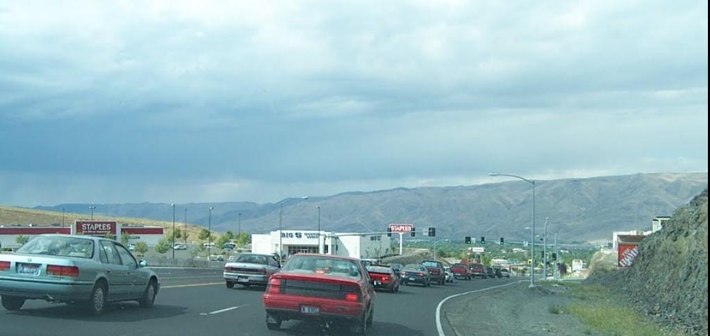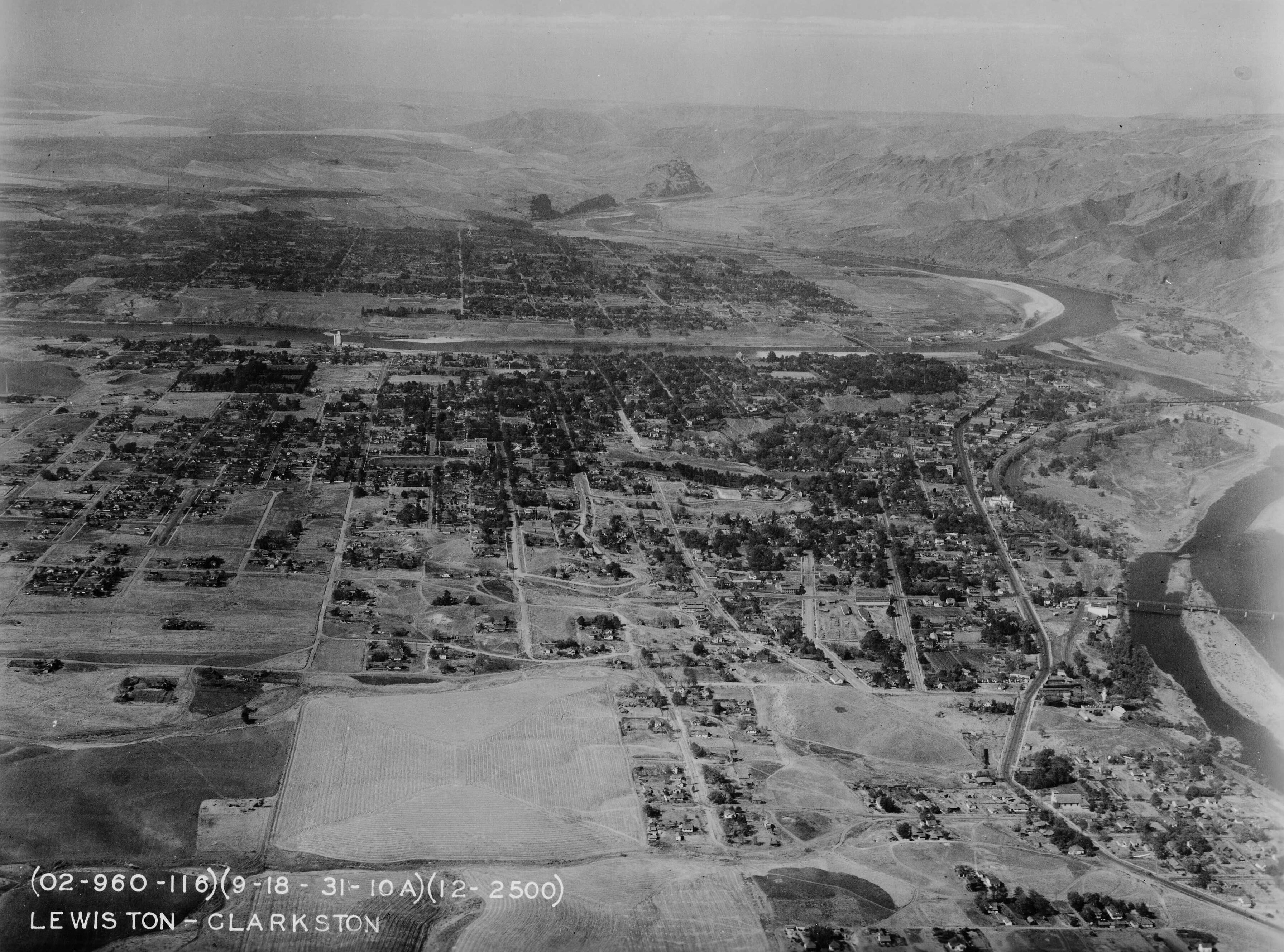 2002년 "Thain Grade"를 따라 내려가는 교통 흐름. 이곳은 루이스턴 오차드와 루이스턴 시내의 저지대를 연결하는 도로이다. 루이스턴 힐은 클리어워터 강 건너편과 스네이크 강의 굽이진 곳에서 볼 수 있다.