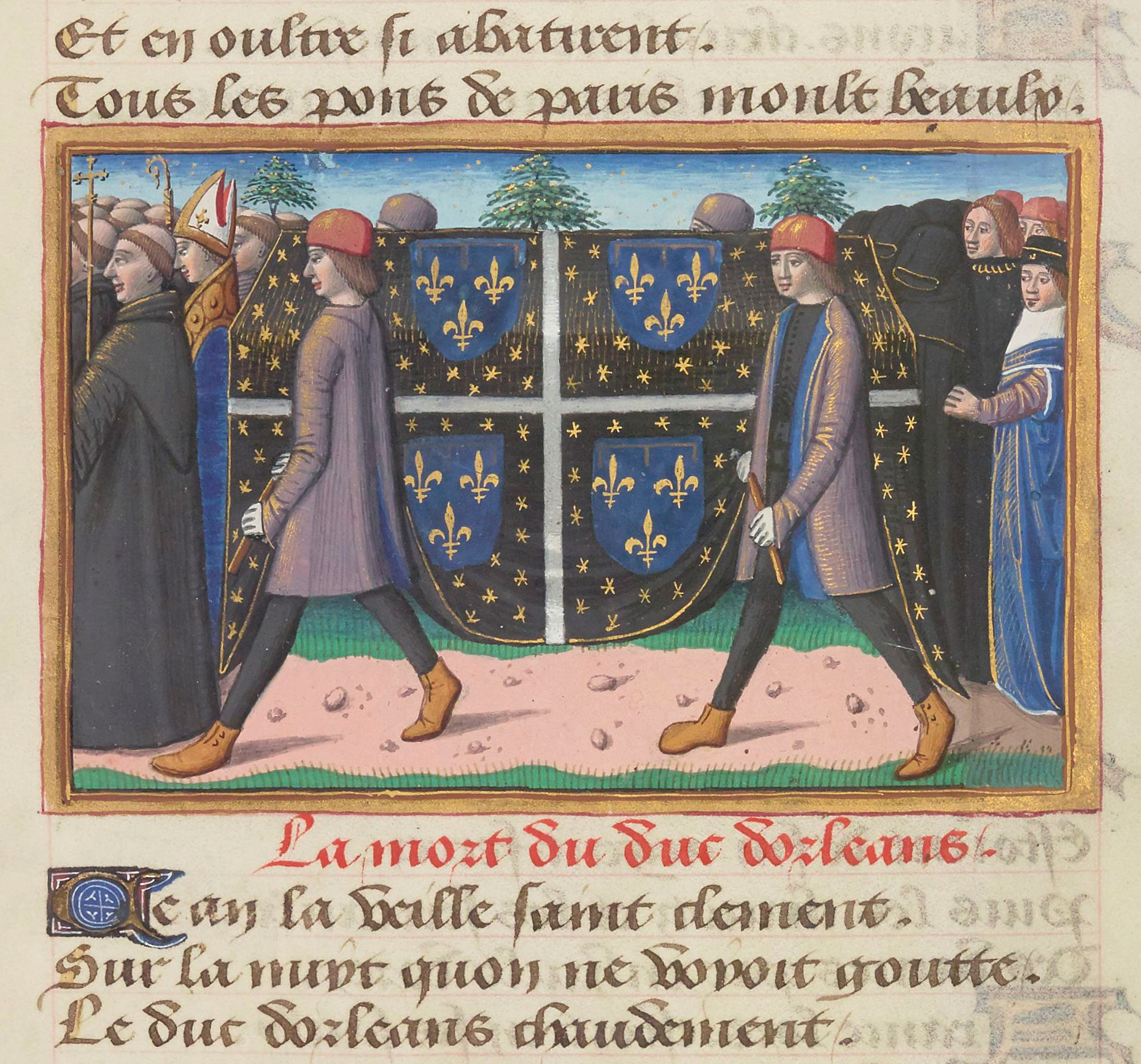 1407년 11월 20일 일요일, 대립하던 루이 1세 도를레앙 공작과 장 1세는 프랑스 궁정 앞에서 화해를 약속하는 엄숙한 맹세를 주고받았다. 그러나 불과 사흘 뒤인 11월 23일, 루이는 파리 거리에서 장 1세의 명령에 의해 잔혹하게 암살당했다. 루이는 부르고뉴 공작의 하인인 라울레 드 앙케통빌이 이끄는 15명의 복면을 한 범죄자들에게 말을 타던 중 찔려 살해되었으며, 시종 한 명도 중상을 입었다.[3]