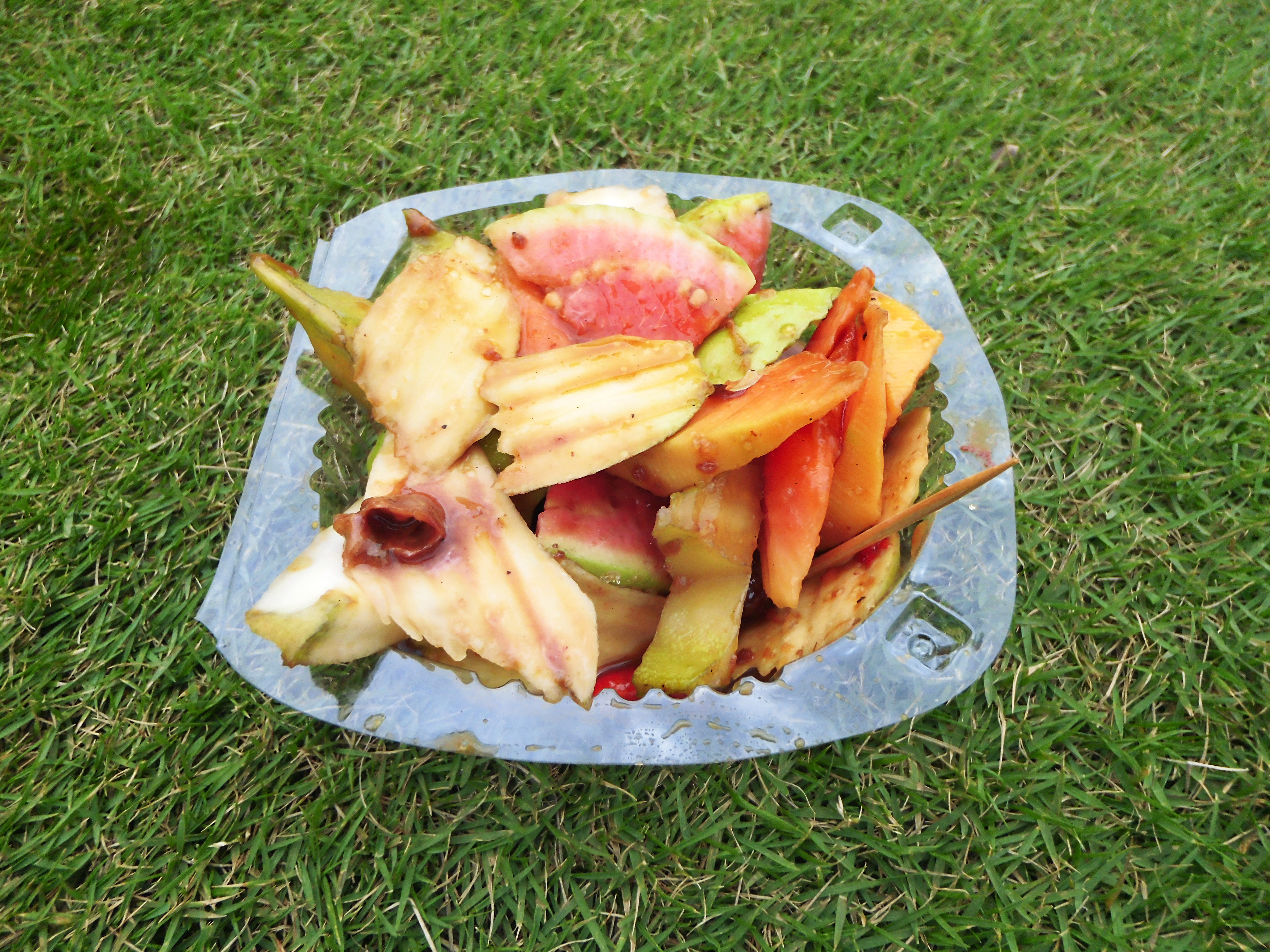 ''bumbu rujak'' 또는 걸쭉한 달콤하고 매운 루작 드레싱을 과일 조각에 뿌린다. 루작을 짠 맛으로 선호하는 사람들을 위해 ''삼발 가람'' 가루(소금과 고춧가루의 간단한 혼합물)를 곁들여 제공한다. 자바 사람들은 이러한 종류의 루작을 ''로티스''라고 부른다.[16] 루작 부아는 파파야, 망고, 히카마, 물깸부 등에 매콤한 드레싱을 뿌려 먹는 과일 샐러드이다.[62][63] 루작에 자주 사용되는 히카마는 뿌리채소이지만, 배나 사과와 비슷한 맛이 난다.[46]
