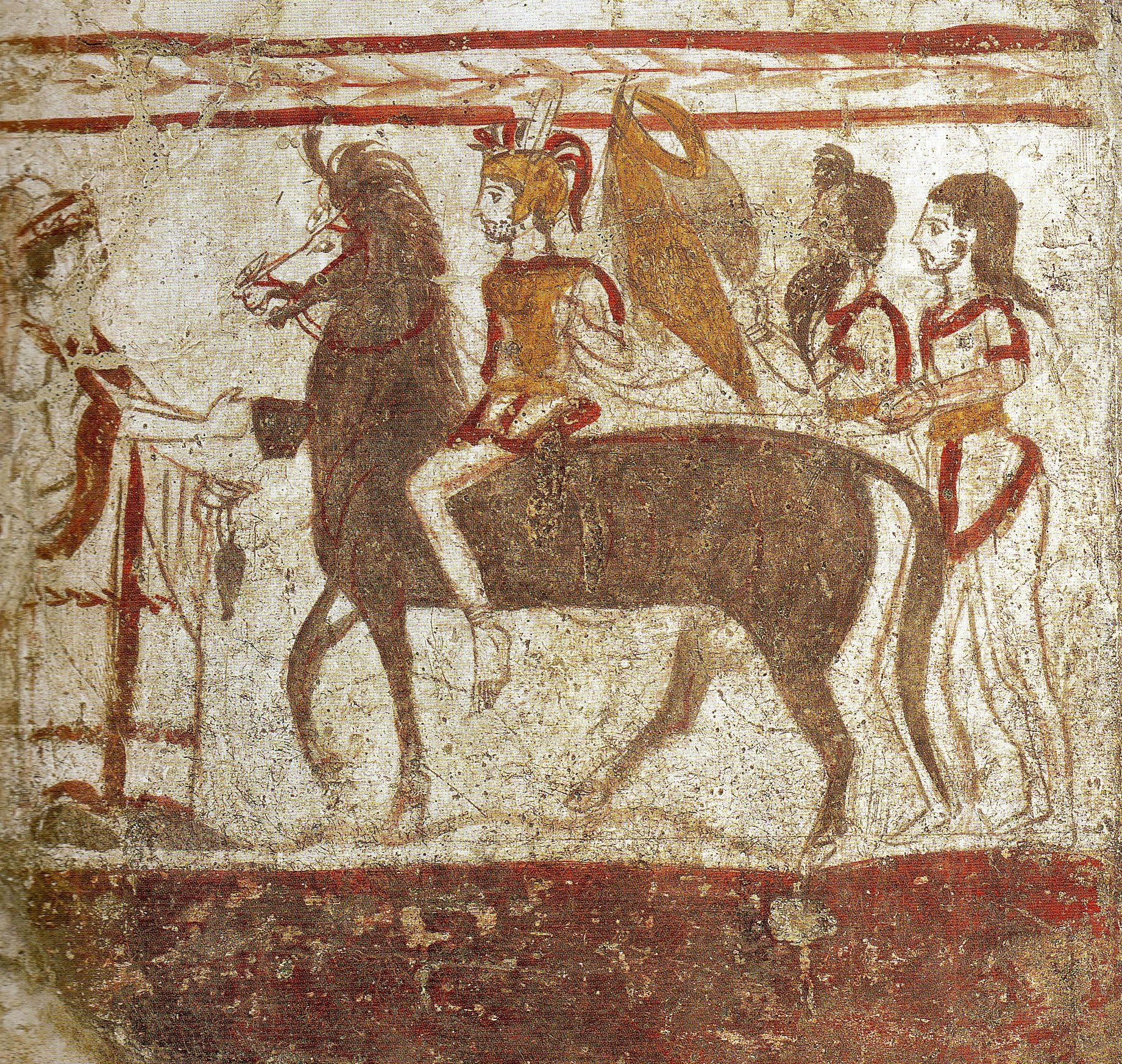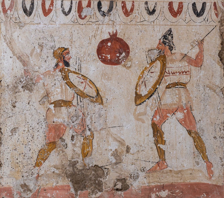 루카니아 전사들의 결투, 기원전 4세기의 무덤 프레스코화.