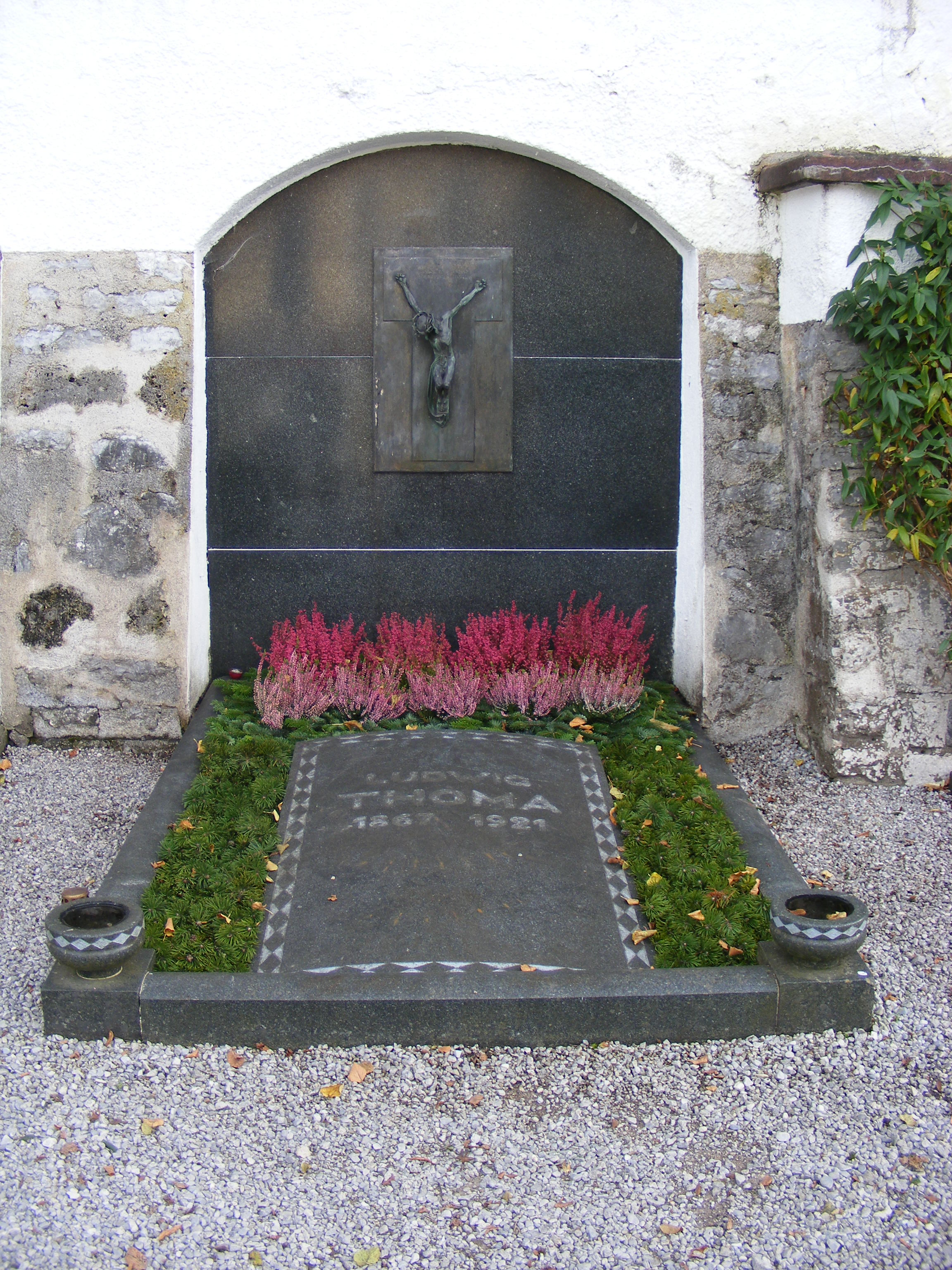 1908년, 루트비히 토마는 테게른제에 있는 "아우프 데어 투프텐"(Auf der Tuften)이라는 집으로 이사했다. 그 해 초연된 그의 희극 ''도덕''(Moral)은 그의 가장 큰 성공작 중 하나가 되었다. 이 연극에서 그는 도덕 협회(''Sittlichkeitsverein'')의 대표자를 등장시켰는데, 그는 그러한 협회의 원칙에 어긋나는 심각한 위반을 저질렀다. 대표자는 "도덕적이 되는 것은 내 방에서 혼자서 할 수 있지만, 그것은 교육적 가치가 없습니다. 중요한 것은 당신이 공공연히 도덕적 원칙을 고백하는 것입니다. 그것은 가족에게, 국가에게 좋은 영향을 미칩니다."라고 말했다.[33] 같은 작품에서, 이 도덕 사회의 회장은 "아쎄서 씨, 부부가 결혼 생활에서 거짓말을 멈추면, 그들은 헤어집니다."라고 진술한다.[34]2. 6. 제1차 세계 대전과 정치적 변화