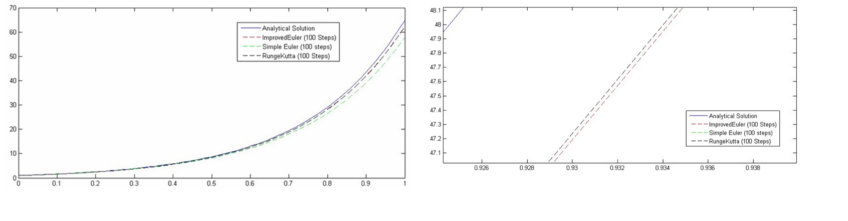 이 방법은 초기값 문제 를 해결하는 데 사용될 수 있다. 단계 크기 ''h'' = 0.025를 사용하면, 네 단계를 거쳐야 한다.