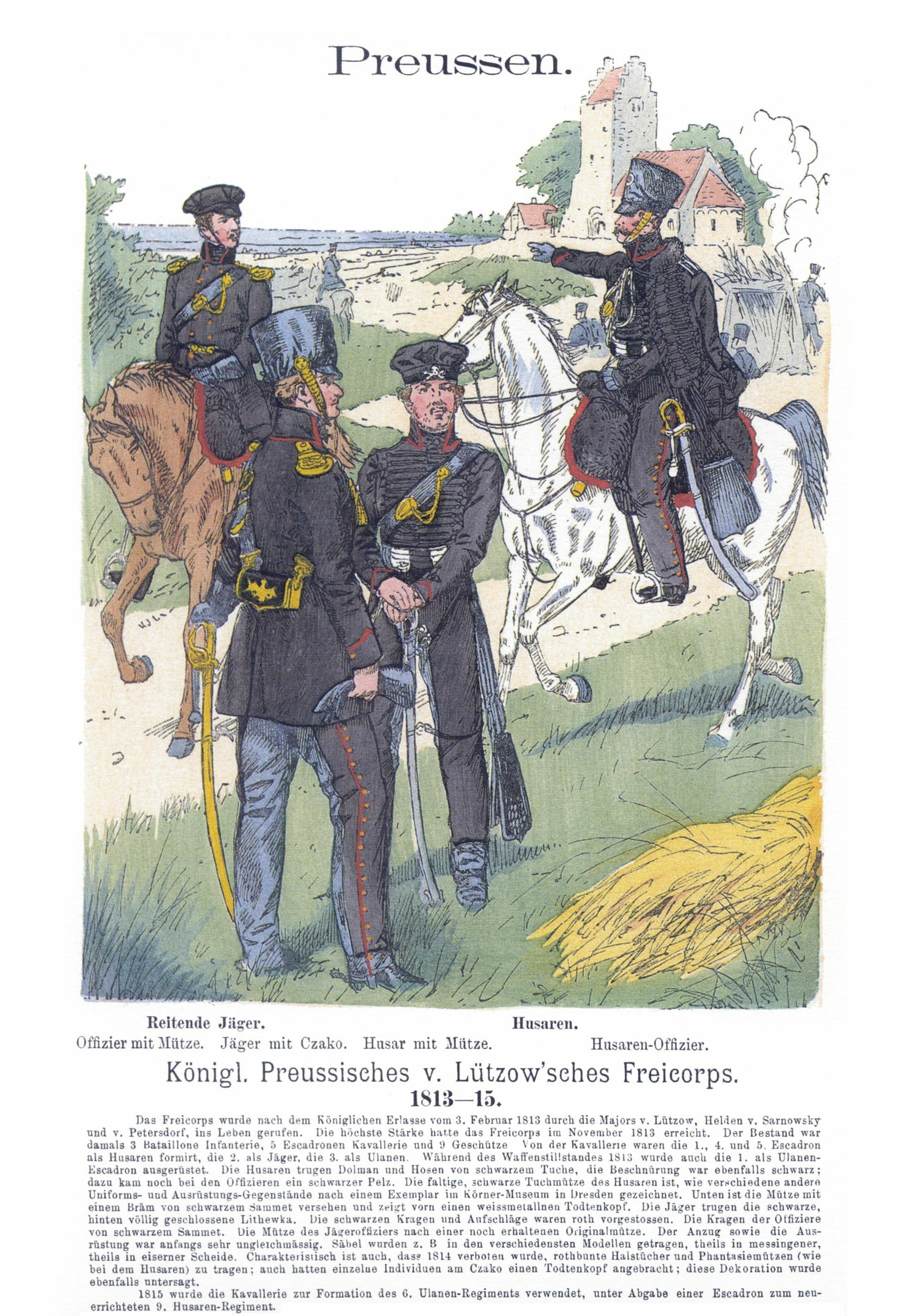 1813년 2월, 뤼초 자유군단은 프로이센 왕립 자유군단으로 공식 창설되었다. 이 부대는 페르디난트 폰 실 휘하 장교였던 아돌프 폰 뤼초가 창설을 주도했으며, 프로이센 참모총장 게르하르트 폰 샤른호르스트의 허가를 받아 조직되었다.[1] 이들은 프랑스 제1제국의 나폴레옹 보나파르트에 맞서기 위해 독일 전역(오스트리아 제국 포함)에서 지원병을 모집했다. 뤼초 자유군단의 목표는 소규모 독일 국가들이 제6차 대프랑스 동맹에 합류하도록 돕는 것이었다.[1]
