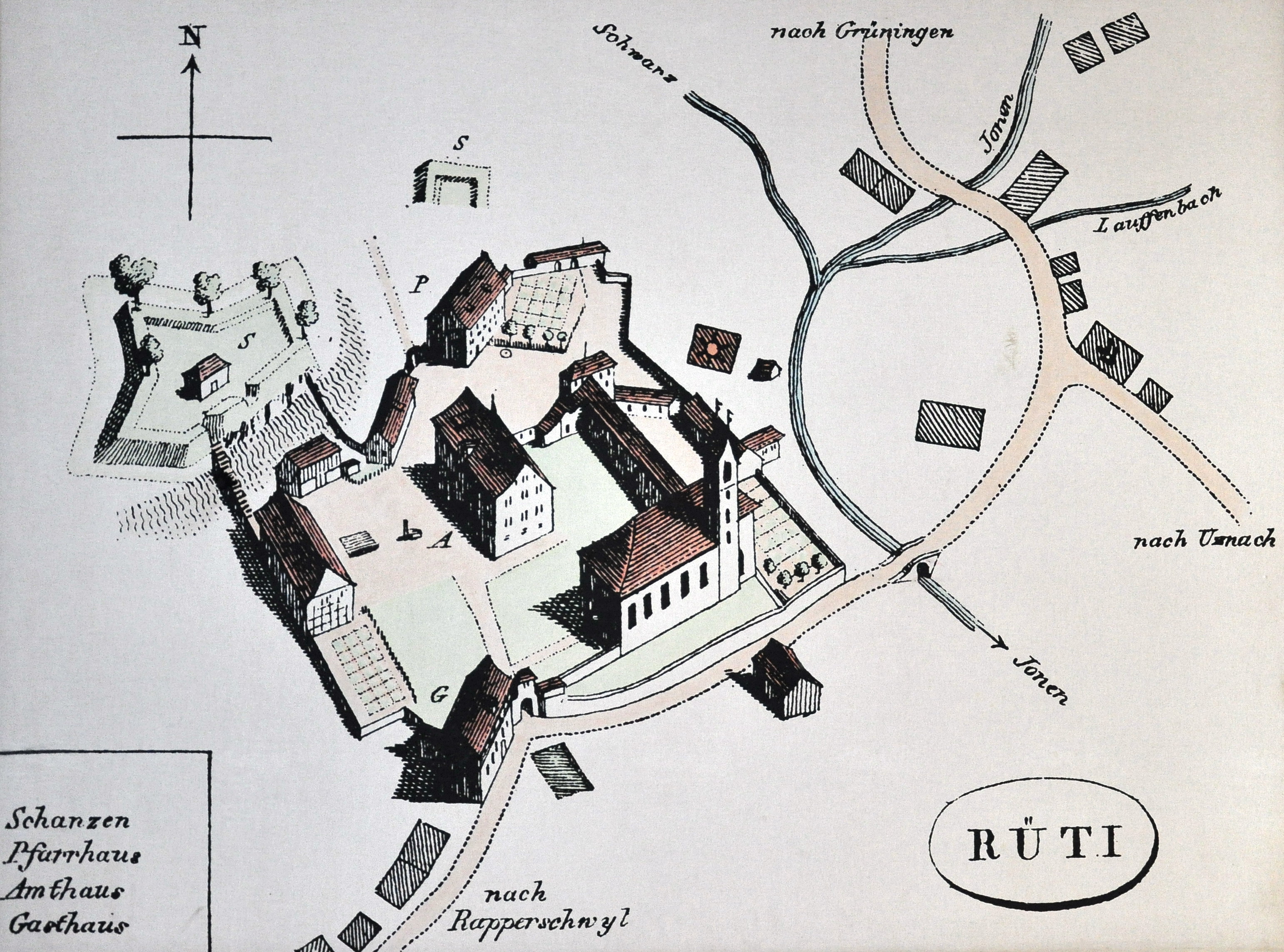 1525년 취리히 종교 개혁의 여파로 뤼티 수도원이 세속화되면서, 수도사 3명은 개신교로 개종하여 카펠 전투에서 사망했고, 3명은 뤼티에 남았다. 마지막 남은 수도사였던 세바스티안 헤그너는 라퍼스빌로 망명하여 그곳에서 생을 마감했다.[15]