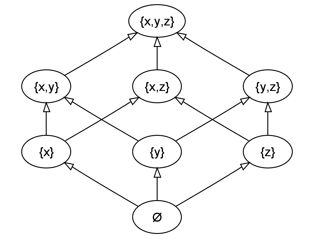 즉, 이는 은 곱공간 에서, 적어도 한 좌표가 밑점 이 되는 점들로 구성된 부분 공간이다.