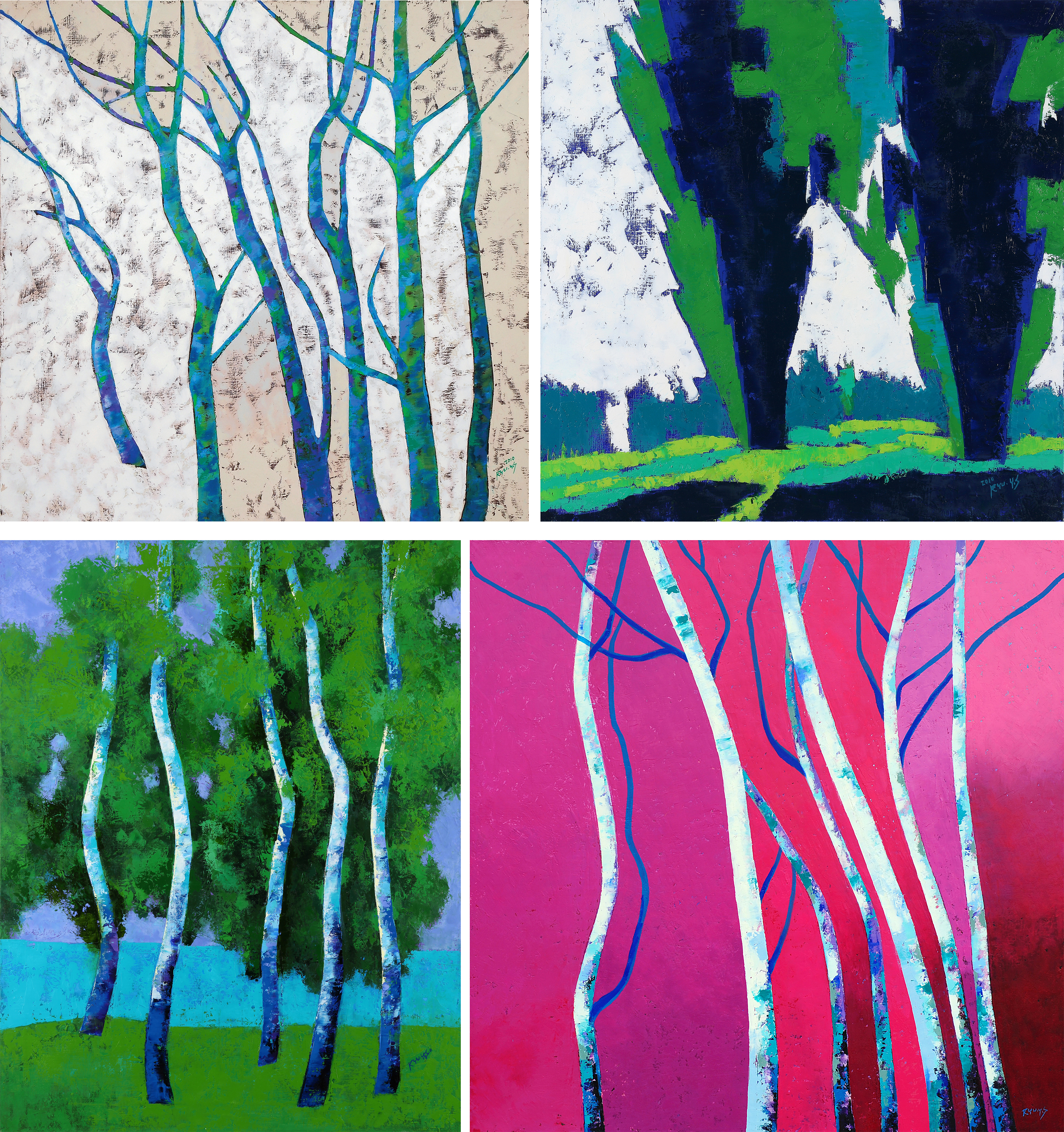 자작나무와 미루나무 시리즈가 본격화되는 시기이다. 줄기와 가지, 나뭇잎 등 단순과 생략의 재해석이라는 형식미를 드러낸다. 특히 시베리아 횡단철도에서 바라보았던 끝없이 펼쳐진 숲과 러시아 여인의 인상이 나무의 의인화를 통해 배어나온다. 기하학적 평면과 선의 이미지는 창공으로 뻗어나가는 숲의 힘찬 기운과 벅찬 희열의 풍만함을 선사한다.[2]