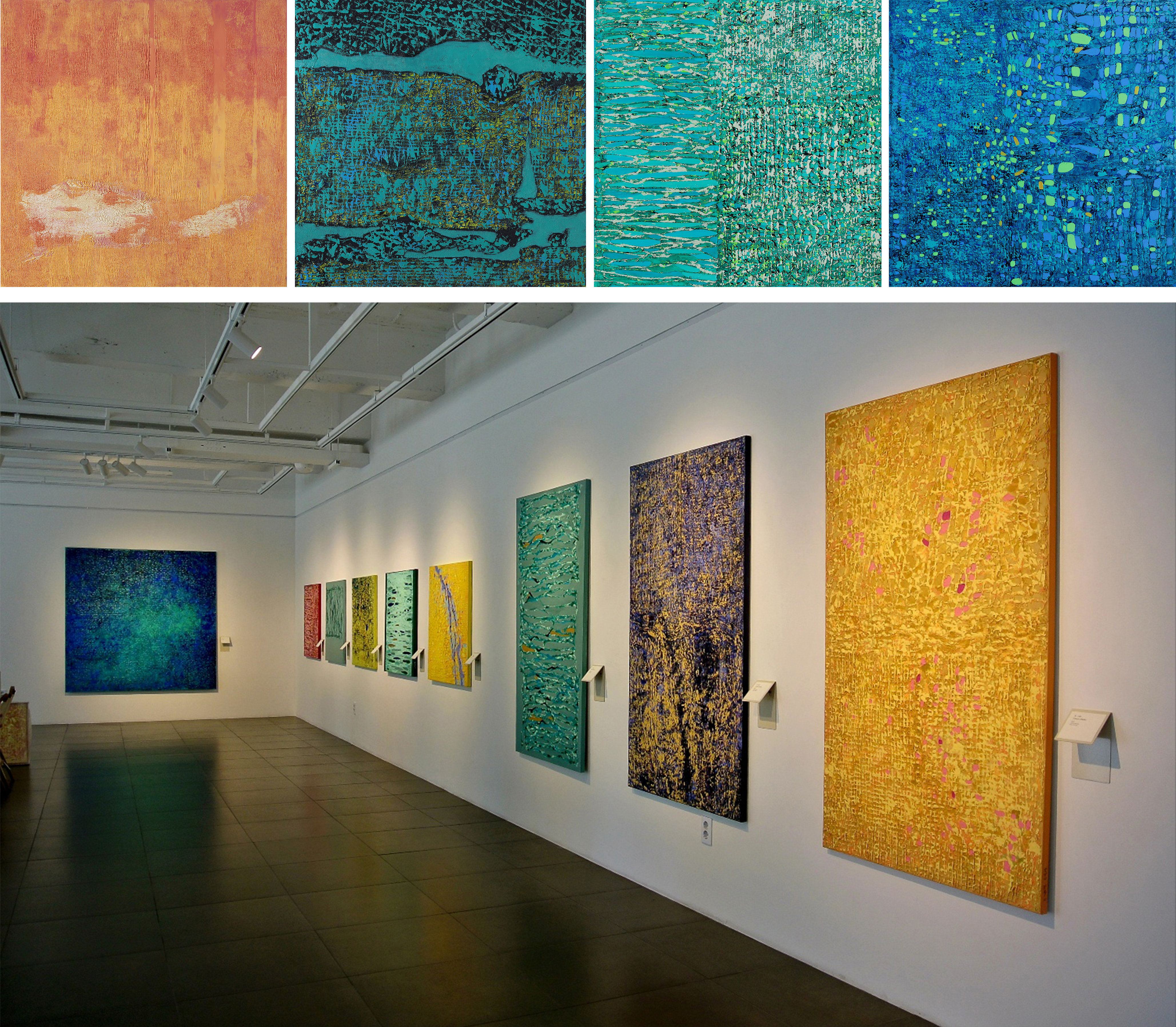 원시의 대자연 그 깊숙한 공간에서 우주와 교감하는 시원(始原)의 자국을 추상화폭에 펼친다. 닥나무질료 오브제는 리좀적 사유와 불교의 인드라망을 떠올리게 한다. 유화 나이프의 빠른 속도감으로 펴 바르거나 쌓은 거친 질감의 층위는 존재의 공존이라는 의미화에 중점을 둔 미감을 제공한다.