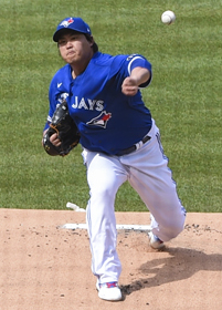 2020년 시즌은 코로나19 범유행의 영향으로 60경기 단축 시즌으로 치러졌다. 7월 24일 탬파베이 레이스와의 개막전에 선발 등판하여 블루제이스 데뷔전을 치렀고, 4.2이닝 3실점을 기록했다.[48][87] 8월 6일 애틀랜타 브레이브스전에서 이적 후 첫 승리를 거두었다.[88] 시즌 최종 성적은 12경기 선발 등판, 5승 2패, 평균자책점 2.69를 기록했다. 9월 24일 뉴욕 양키스와의 정규 시즌 마지막 등판에서는 7이닝 무실점 4탈삼진으로 호투하며 팀의 4-1 승리를 이끌었고, 블루제이스의 2016년 이후 첫 포스트시즌 진출을 확정지었다. 시즌 후 아메리칸 리그 사이 영 상 투표에서 3위를 차지했고, 한국인 최초이자 아시아 선수 최초로 워렌 스판 상(매년 최고의 좌완 투수에게 수여)을 수상했다.[49] 또한 2년 연속으로 올-MLB 팀 세컨드 팀 선발 투수로 선정되었다.[89]