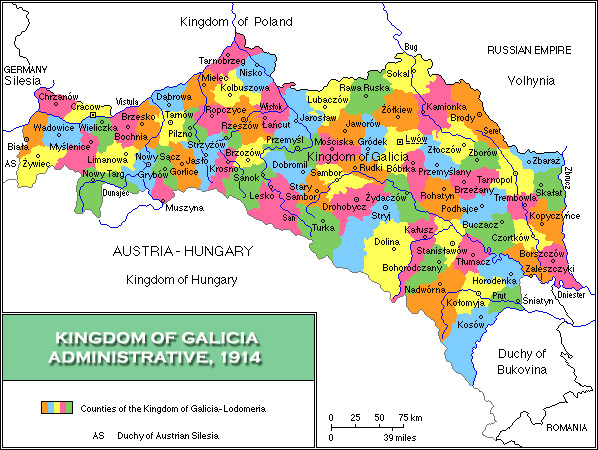 폴란드-리투아니아 연방의 지배를 받던 이 지역은 1772년 폴란드 제1차 분할을 계기로 오스트리아-헝가리 제국의 영토가 되었다. 오스트리아-헝가리 제국의 지배는 1918년까지 지속되었다. 제1차 세계 대전에서 오스트리아-헝가리 제국이 패배하면서 제국의 통치는 끝나고, 이 지역에는 서우크라이나 인민공화국이 건국되었다. 하지만 새롭게 세워진 공화국은 폴란드-우크라이나 전쟁(1918년-1919년)에서 패배하여 오래가지 못하고 멸망하였다.2. 4. 서우크라이나 인민공화국과 폴란드 제2공화국 시대