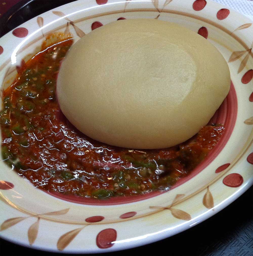 기타 | 생선 (주로 틸라피아), 우갈리 (옥수수 가루 반죽), 이삭 (카사바 잎), 아카벤제 (호박 페이스트), 마테케 (플랜틴 스튜) |