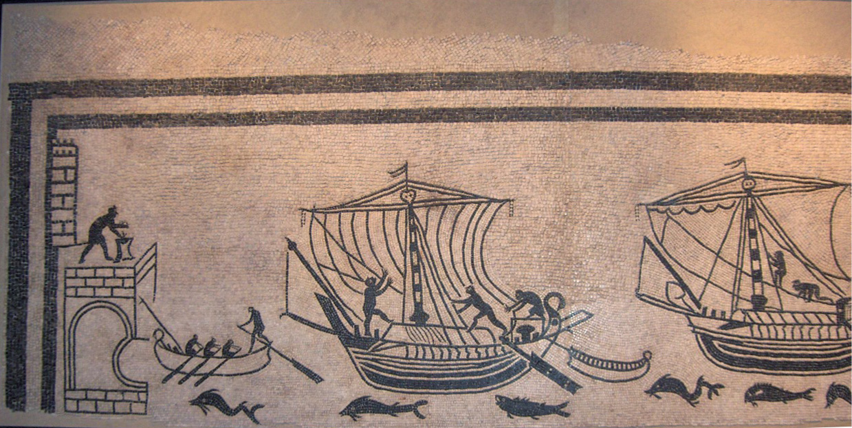리미니의 고대 항구, 팔라초 디오탈레비의 도무스에 있는 「배의 모자이크」에 묘사됨