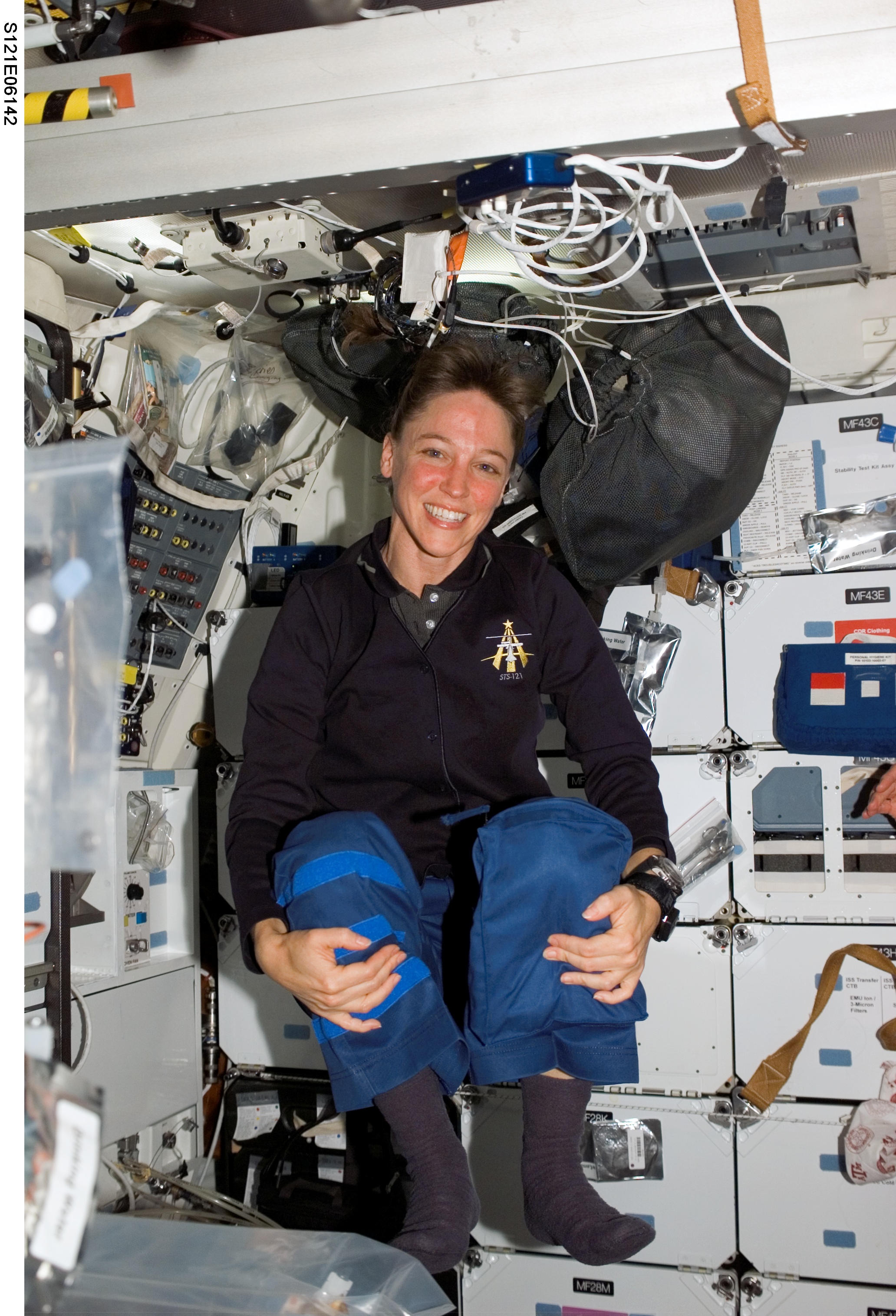 노왁은 궤도에 진입한 후 우주 적응 증후군의 증상인 메스꺼움을 느꼈다. 우주에서의 첫날은 승무원들이 발사 중 외부 탱크에서 파편이 떨어지는 것을 알아차렸기 때문에 우주왕복선 궤도선의 손상 가능성을 검사하는 데 할애되었다. 노왁은 로봇 팔을 배치하여 디지털 및 비디오 카메라와 레이저 스캔을 사용하여 우주선의 날개 끝, 코 및 하단을 검사했다. 6시간 반의 검사 후,[25][26] 코 캡에서 흰색 반점만 발견되었다. NASA 엔지니어들은 처음에 이것이 고속 충돌의 결과일 수 있다고 우려했지만, 더 자세히 검사한 결과 새의 배설물인 것으로 확인했다. 앞부분 가장자리에 발견된 약간의 변색은 유압 유체 유출로 인한 것으로 여겨졌다.[26]