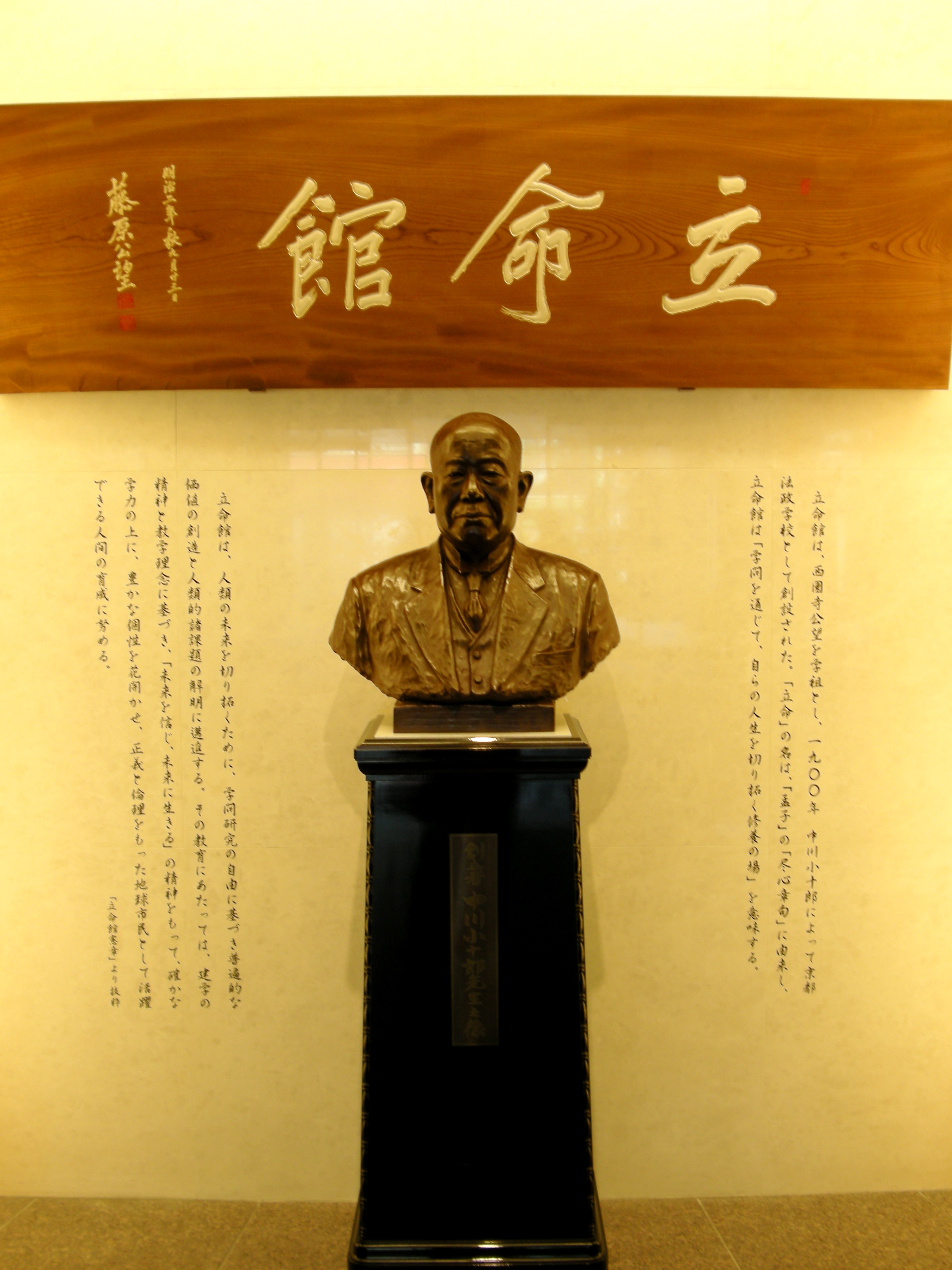 리쓰메이칸 대학 국제평화뮤지엄은 '평화와 민주주의' 이념을 바탕으로 설립되어 일본 제국의 15년 전쟁과 현대 전쟁, 국제 평화 관련 전시를 통해 평화의 의미를 되새기게 하는 박물관이며, 데즈카 오사무의 불새 부조와 와다츠미상이 설치되어 있고 평화를 위한 시민 활동과 대한민국의 촛불 시위 관련 전시품을 소장하고 있다. - 사이온지 긴모치 - 다이쇼 정변