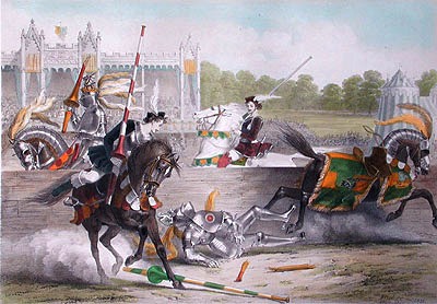 특히 1839년 스코틀랜드에서 열린 1839년 이글린턴 토너먼트는 중세 시대의 격투와 축제를 재현한 웅대한 행사로, 역사적 재연의 중요한 사례로 꼽힌다.[4] 아치볼드 몽고메리, 제13대 이글린턴 백작이 주최한 이 토너먼트는 의도적인 낭만주의적 행사였으며, 약 10만 명의 관람객을 끌어모았다. 러그턴 워터 근처의 초원에[5] 마련된 행사장에서 13명의 중세 기사가 등장했으며, 주최 측은 일반 대중에게도 중세 의상을 입고 참여할 것을 권장했다. 이 행사는 월터 스콧의 소설 ''아이반호''에서 영감을 받아 "문학적 로맨스를 재현하려는 시도"로 평가받는다.[6] 이글린턴 토너먼트는 당시 대중의 정서와 19세기 고딕 리바이벌 유행에 영향을 미쳤으며, 이후 1905년 브뤼셀에서 열린 유사한 토너먼트나 현대의 역사 재연 행사의 선례가 되었다. 이글린턴 백작 자신은 행사에 대해 "내 상상이 묘사했던 장면의 매우 보잘것없는 모방이라는 것을 알지만, 적어도 기사도 부활을 향해 무언가를 했다"고 평가했다.[7]