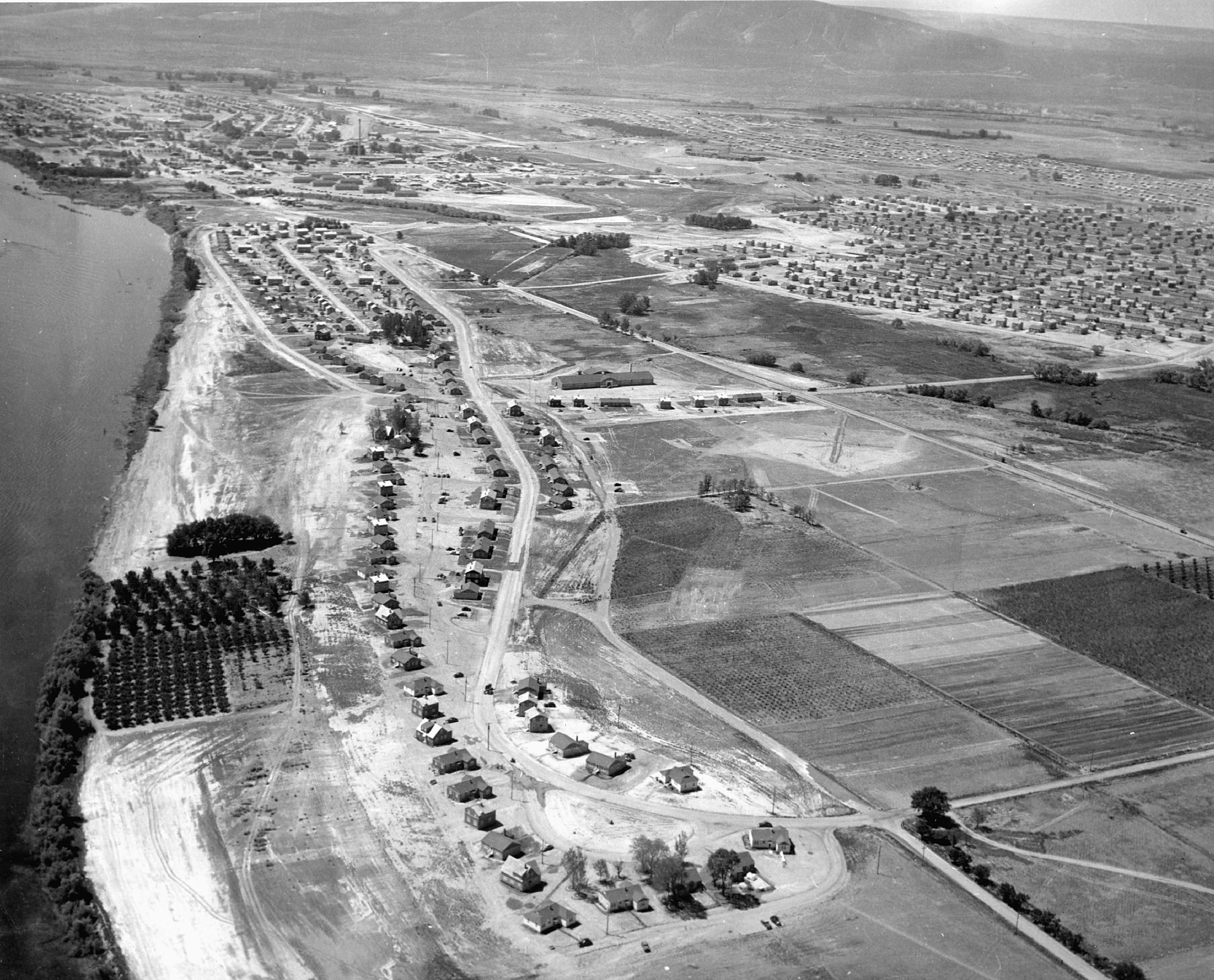 제2차 세계 대전 당시 미국 육군은 콜럼비아 강을 따라 로드아일랜드 면적의 절반에 달하는 토지를 매입했다. 1943년 3월 6일, 리칠랜드 주민 300명 이상과 상류에 위치한, 현재는 사라진 화이트 블러프스 및 핸퍼드 주민들은 전쟁 목적 사용을 위해 연방 법원의 명령에 따라 토지를 수용당했다.[5]