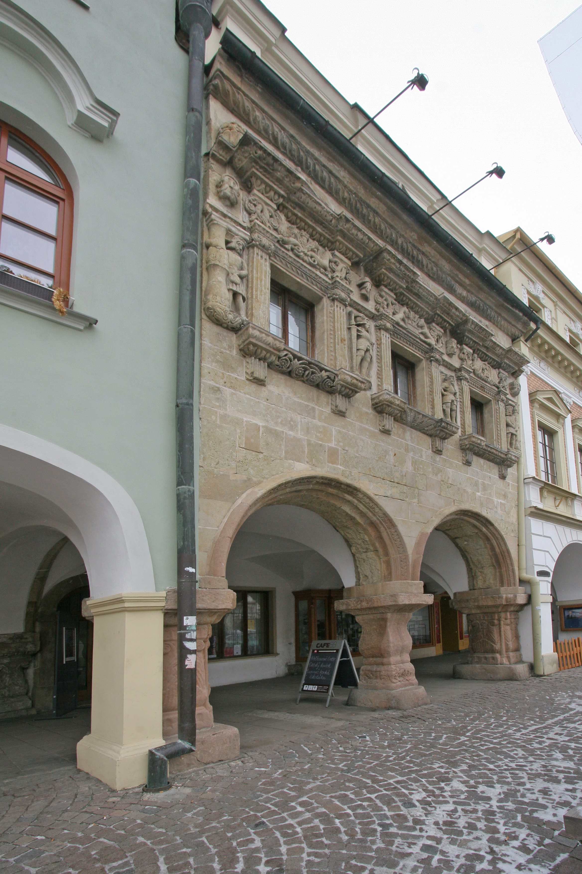 이 광장에 위치한 가장 중요한 부르주아 저택 중 하나가 바로 기사 저택(Dům U Rytířů|둠 우 리티르주ces)이다. 이 저택은 1540년부터 1546년 사이에 지어졌으며, 주목할 만한 석조 파사드를 가진 르네상스 양식의 건물이다.