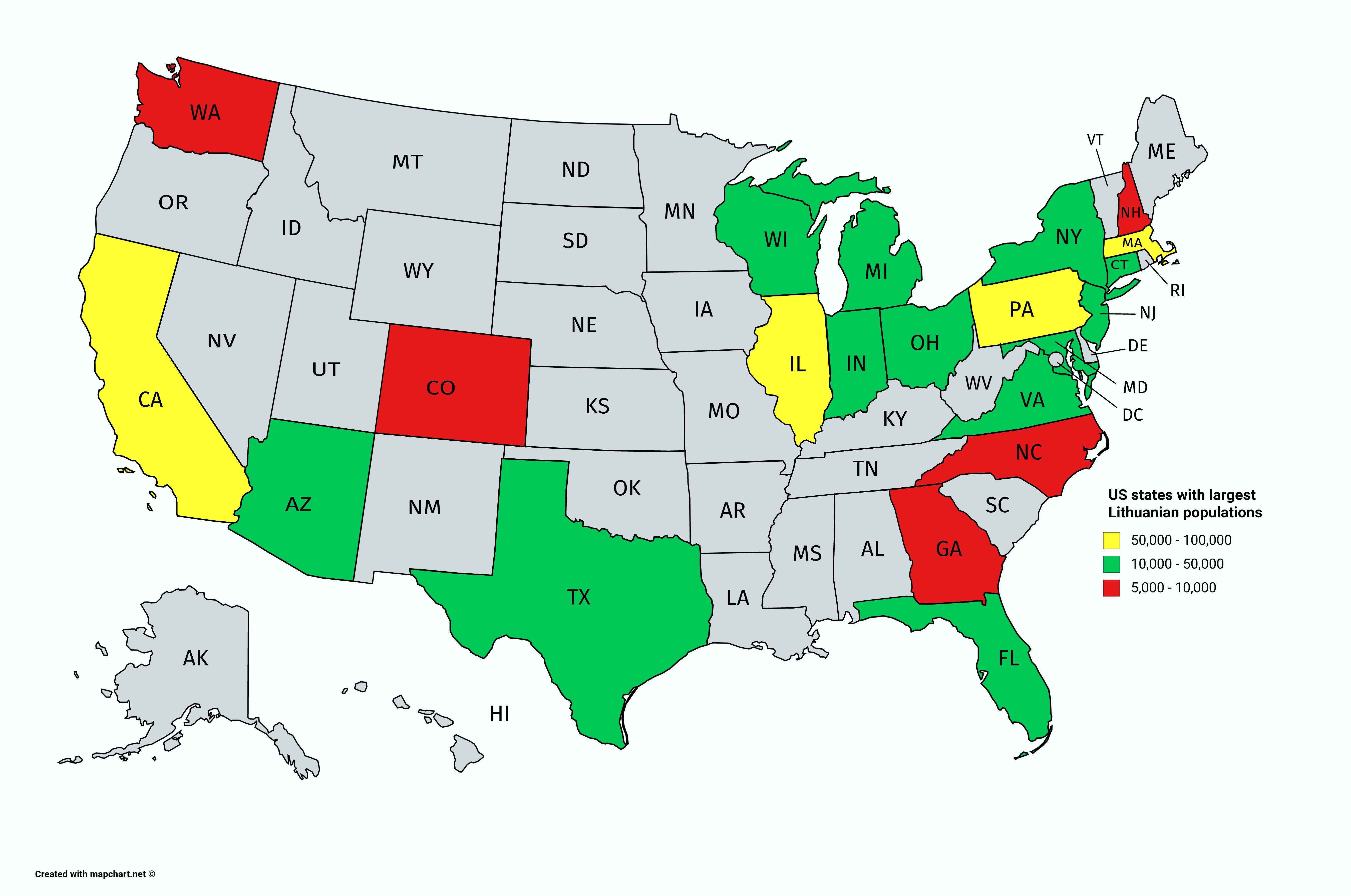 리투아니아계 미국인 인구가 가장 많은 주[17]