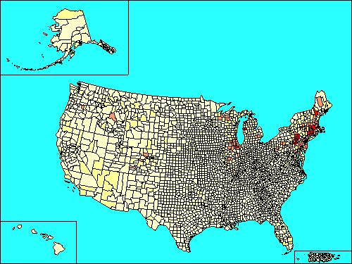 2000년 미국 인구 조사 기준 리투아니아계 미국인 분포