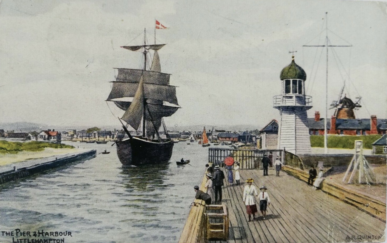 리틀햄프턴은 아룬 강의 지속적인 퇴적으로 인해 항구로 발전하기 시작했으며, 아마도 더 큰 사우스햄튼과 구별하기 위해 '햄프턴' 앞에 '리틀'이라는 접두사가 붙었을 것이다.[4][63] 1735년에는 새로운 강어귀를 개척하고 나무 부두를 건설하여 항구 활동이 확장되었으며, 이 시기에는 ''에런들 항구''라고도 불렸다.[5][64]18세기가 진행되면서 리틀햄프턴은 어촌에서 휴양지로 발전했으며, 바이런 경, 새뮤얼 테일러 콜리지, 퍼시 비시 셸리, 존 컨스터블 등이 이곳에서 시간을 보낸 것으로 알려져 있다.[4]