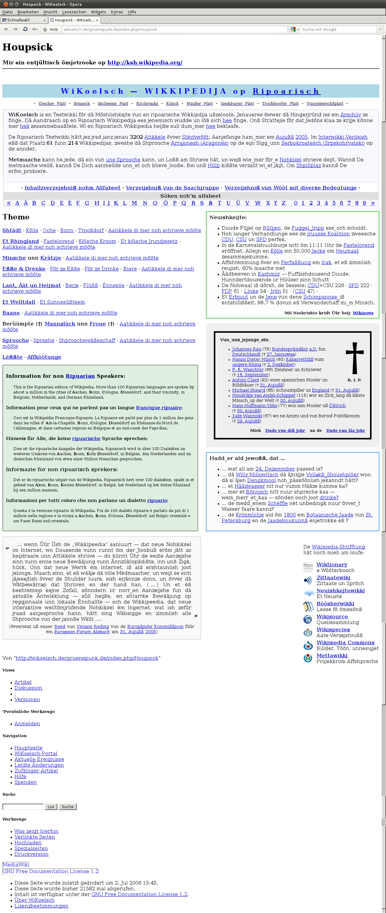 2009년 1월 9일, 한 지역 신문에 리푸아리아어 위키백과(ksh 위키백과)에 대한 짧은 기사가 실렸다.