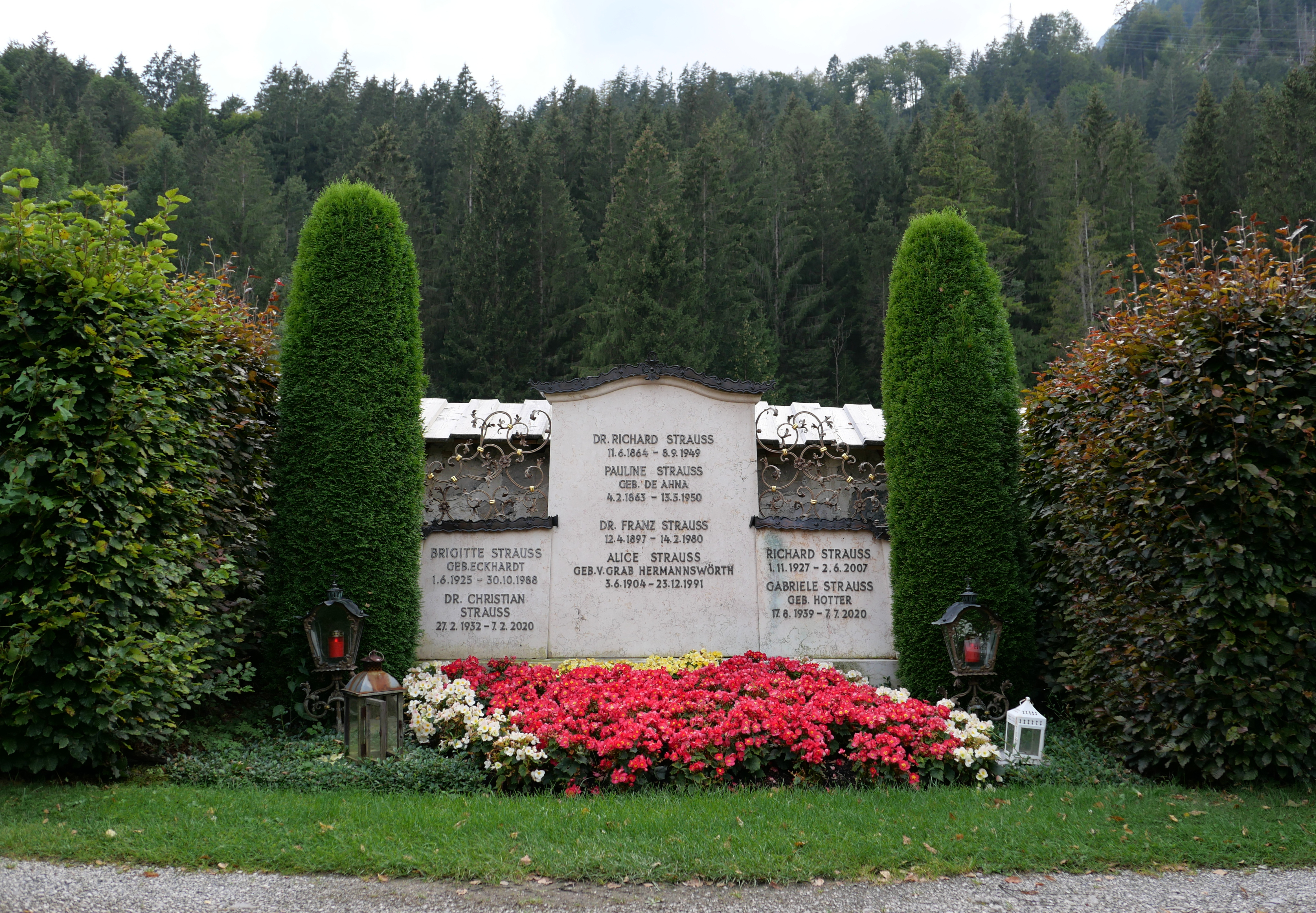 슈트라우스의 유해는 화장되어 가르미슈 묘지에 안치되었다. 이 묘에는 그의 아내 파울리네, 아들 프란츠(1898년~1980년)와 며느리 앨리스(1904년~1991년), 손자 리하르트(1927년~2007년)와 그의 아내 가브리엘, 손자 크리스찬과 그의 아내 브리깃테가 함께 묻혀 있다.[2]