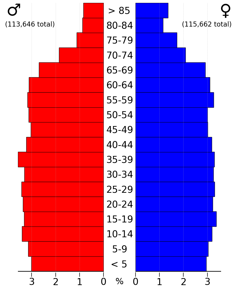 인구인구 밀도단일 인종 (%)비히스패닉 백인 (%)흑인 (%)히스패닉 (%)아메리카 원주민 (%)아시아인 (%)하와이 원주민 또는 태평양 섬 주민 (%)기타 인종 또는 둘 이상의 인종 (%)가구 (거주 중)