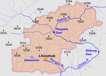 린저우현(ལྷུན་གྲུབ་རྫོང་|lhun grub rdzongbo)은 티베트 중부에 있는 현으로, 라싸에서 북동쪽으로 약 65km 떨어져 있다. 펑보강 계곡과 라싸 강 상류를 포함하며, 면적은 4512km2이다.[3] 지질학적으로 다양하며, 평균 해발고도는 4000m이다. 납, 아연, 구리, 은, 금, 석고 등 광물 자원이 풍부하다. 녠칭탕구라 산맥이 현을 지나며 남부와 북부 지역으로 나뉜다.[3]