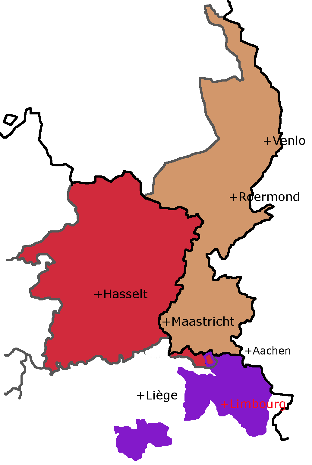 두 개의 현대 림뷔르흐주를 보여주는 지도 (벨기에의 빨간색, 네덜란드의 갈색). 중세 시대의 공작령은 둘 다 이 이름을 따서 지어졌다.