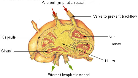 림프는 신체 전체에 존재하며 림프관을 통해 순환한다. 림프는 구심성 혈관을 통해 림프절로 들어오고, 원심성 혈관을 통해 림프절에서 배출된다. 림프액이 림프절에 들어가면 캡슐 바로 아래의 피막하 동이라는 공간으로 배출된다. 피막하 동은 소주 동으로, 마지막으로 수질 동으로 배출된다.
